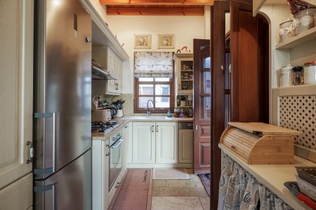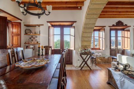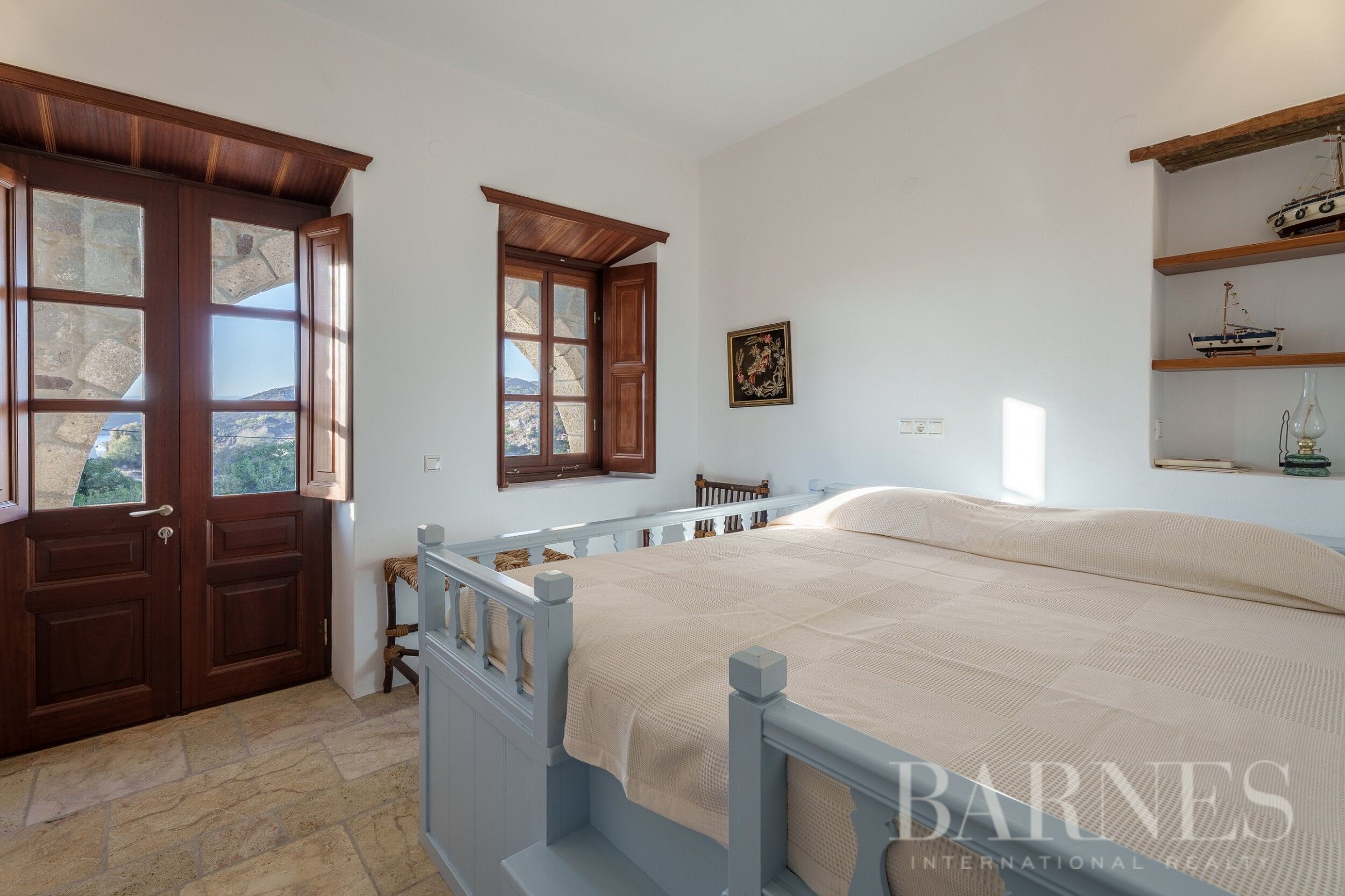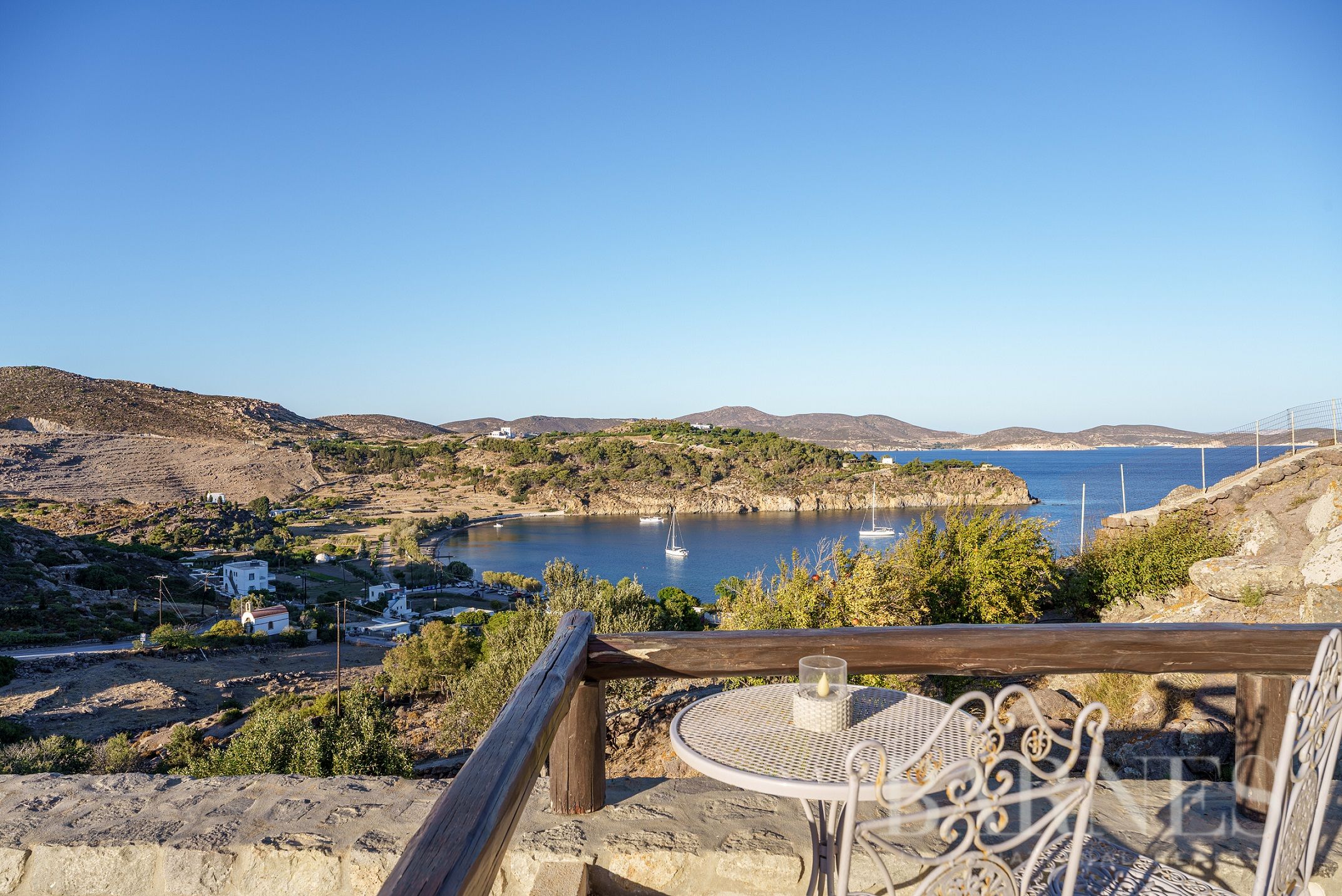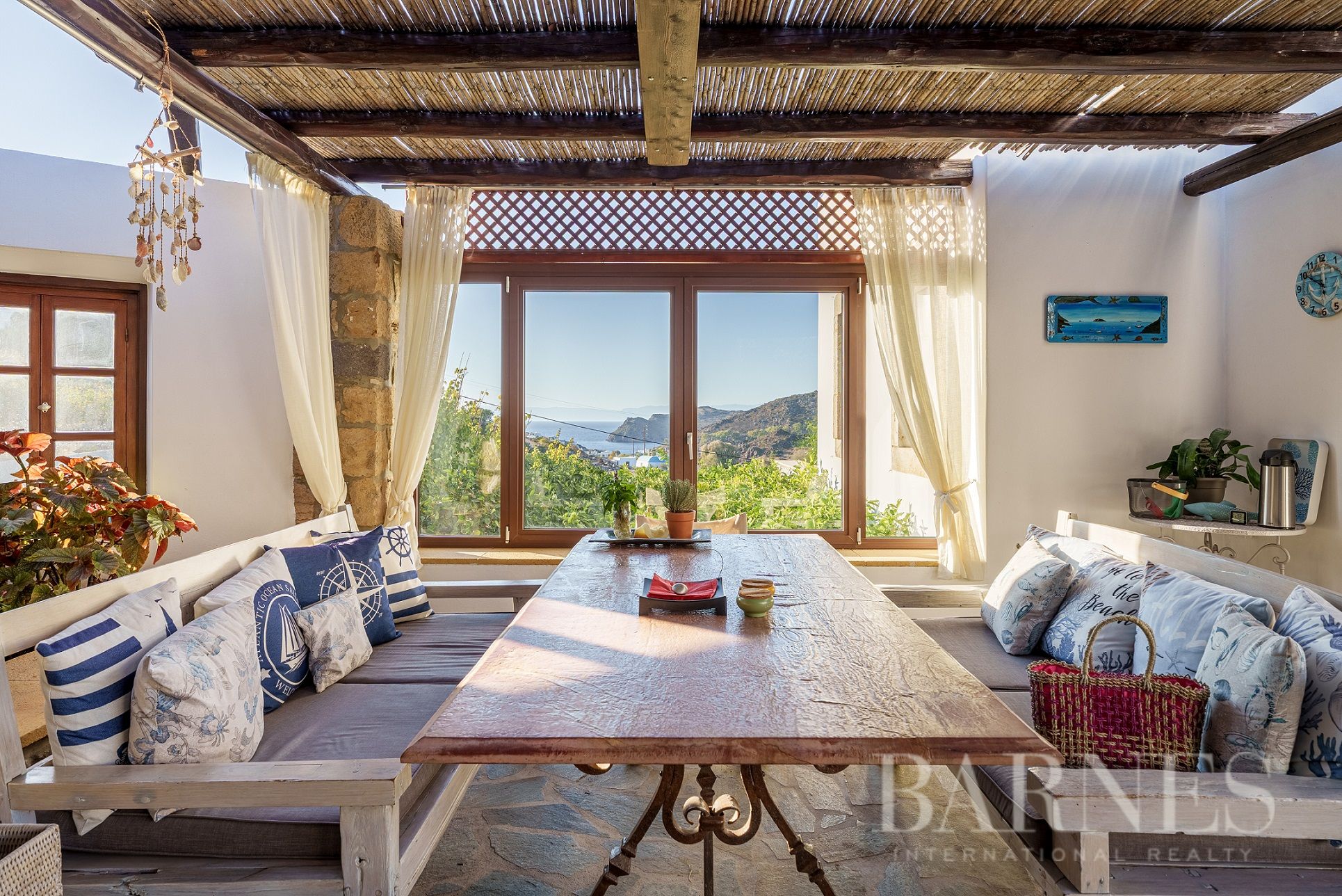 Имотът разполага и с външна кухня с кът за сядане и красиво озеленена градина с гледка към морето и зашеметяващия залез на Патмос.