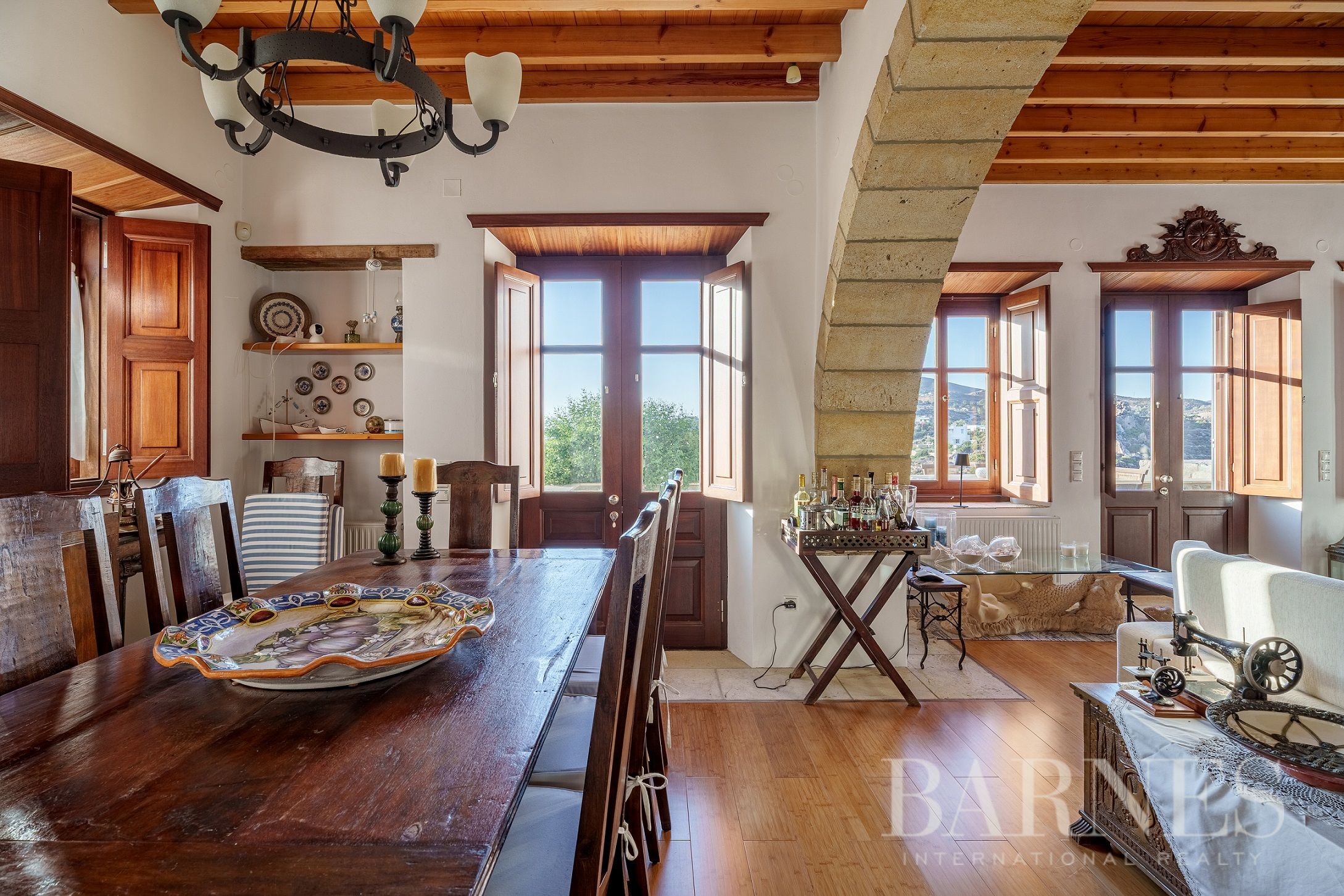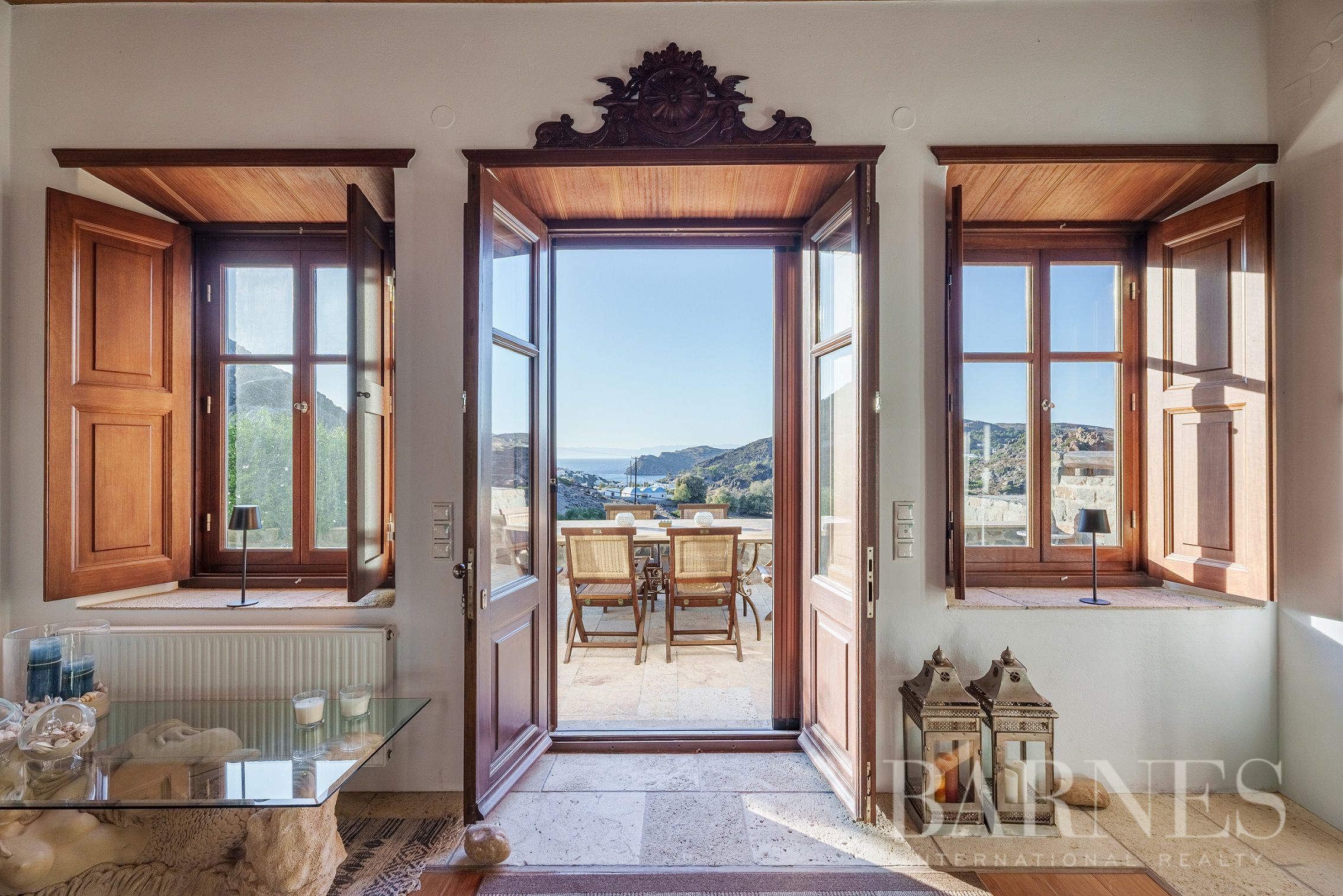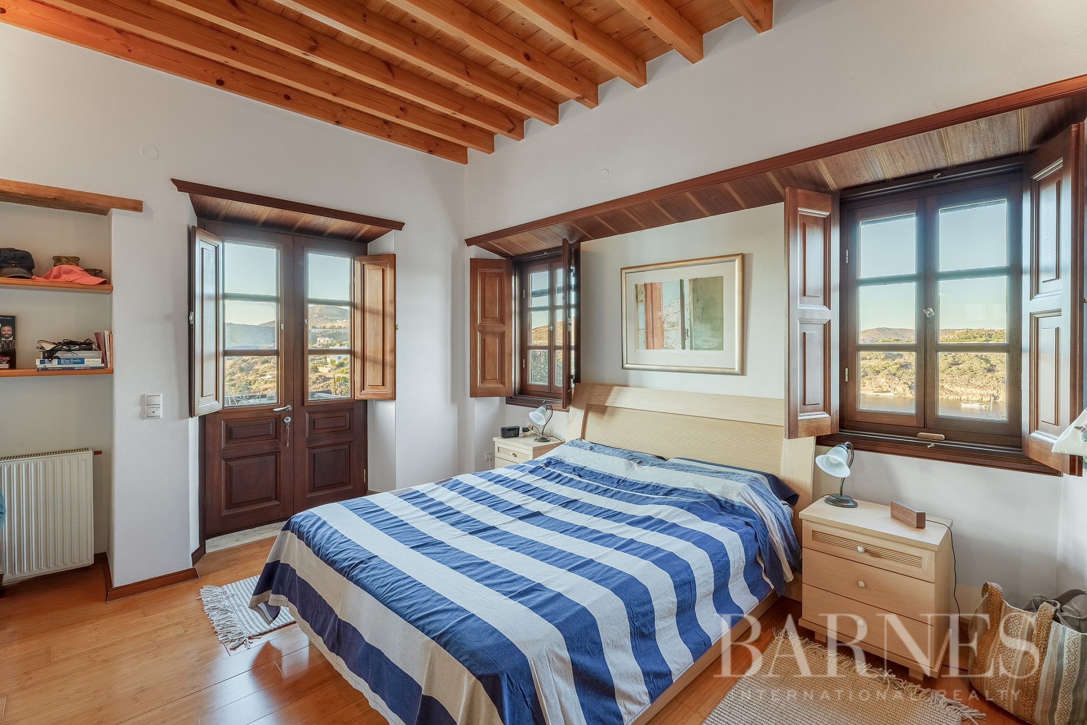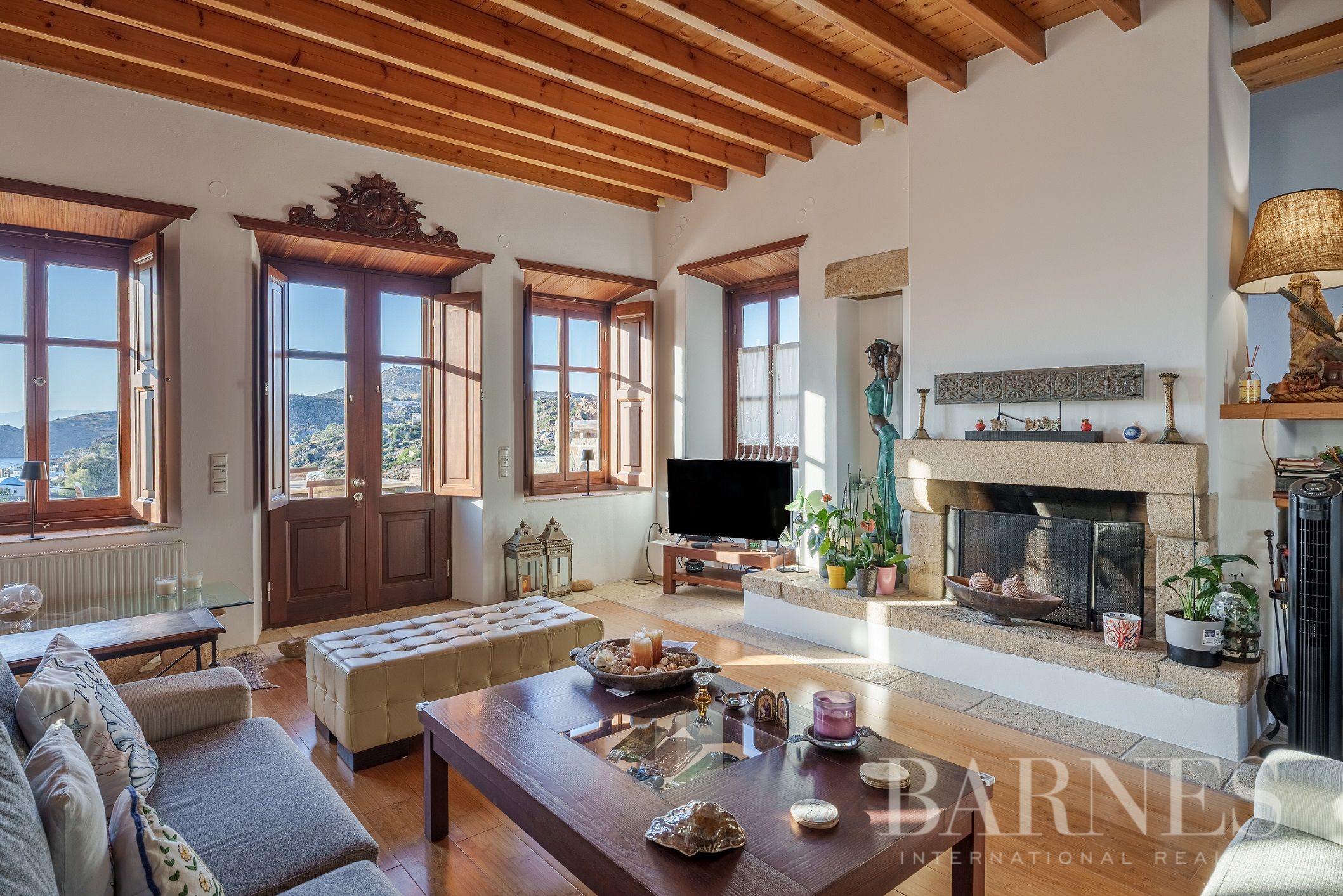 Имотът разполага и с външна кухня с кът за сядане и красиво озеленена градина с гледка към морето и зашеметяващия залез на Патмос.