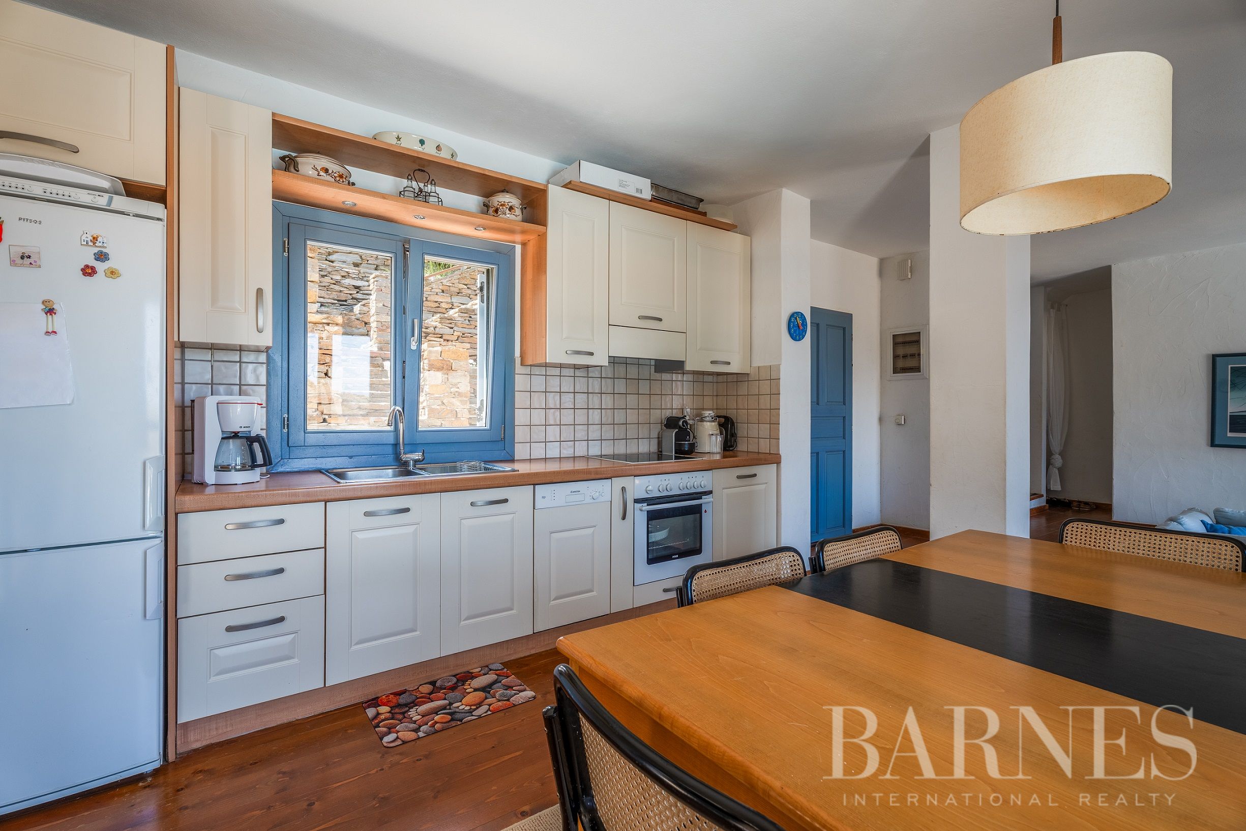 На приземния етаж има хол с камина, кухня с отворен план и неформална трапезария, 1 спалня и 1 баня. Горният етаж включва главна спалня със самостоятелна баня и частен балкон.