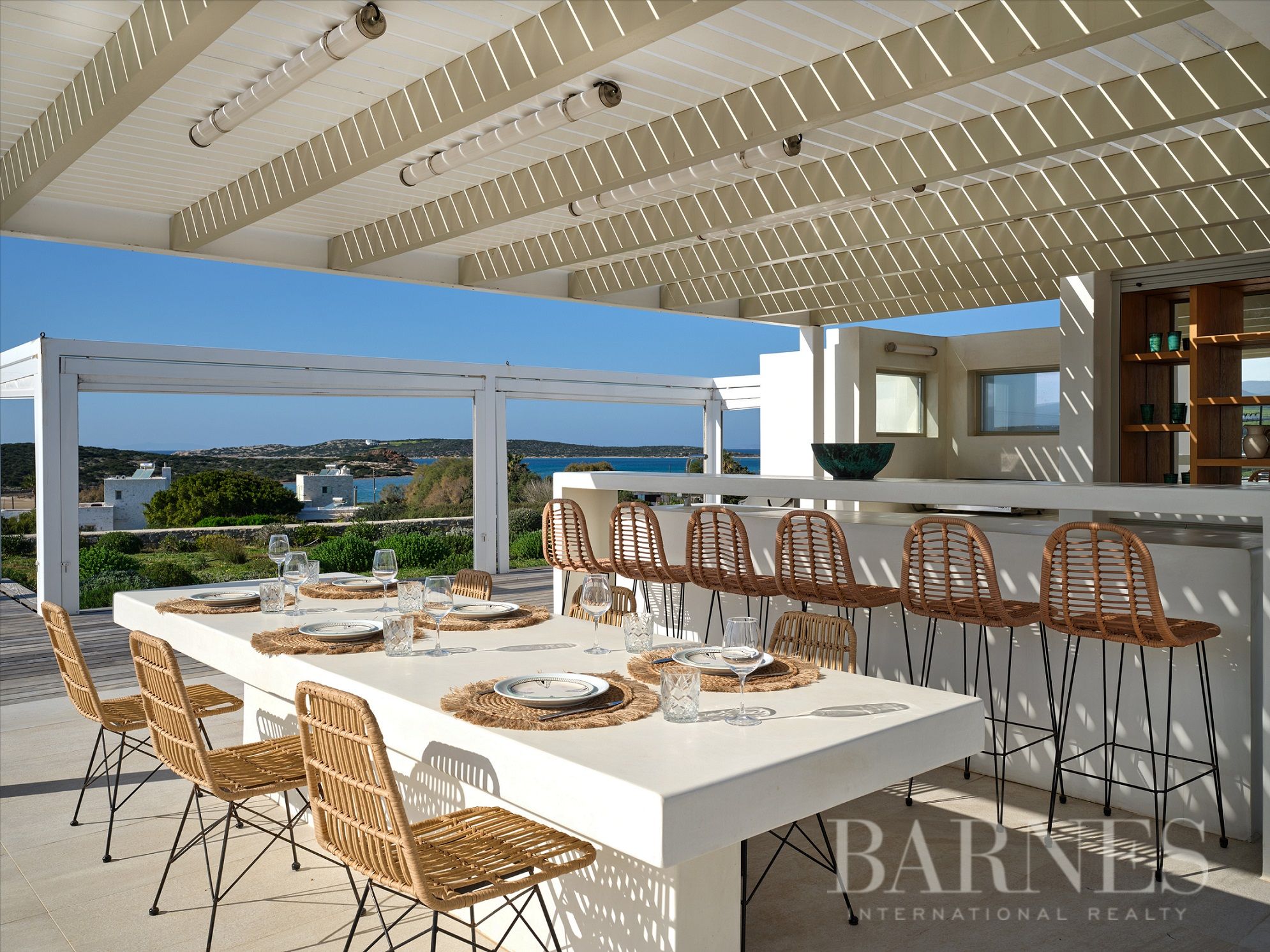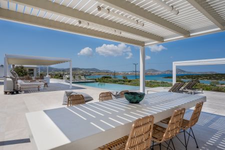 Модерна вила с безпрепятствена гледка към морето и залеза от всеки ъгъл, съчетаваща лукс и функционалност в една от най-търсените дестинации, на остров Парос.