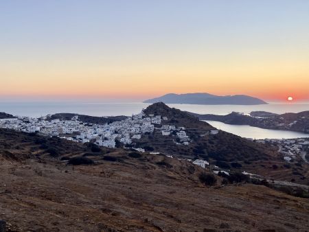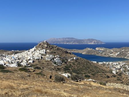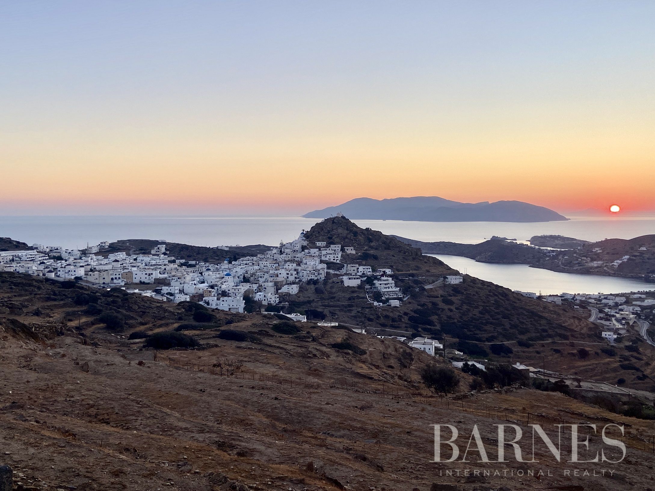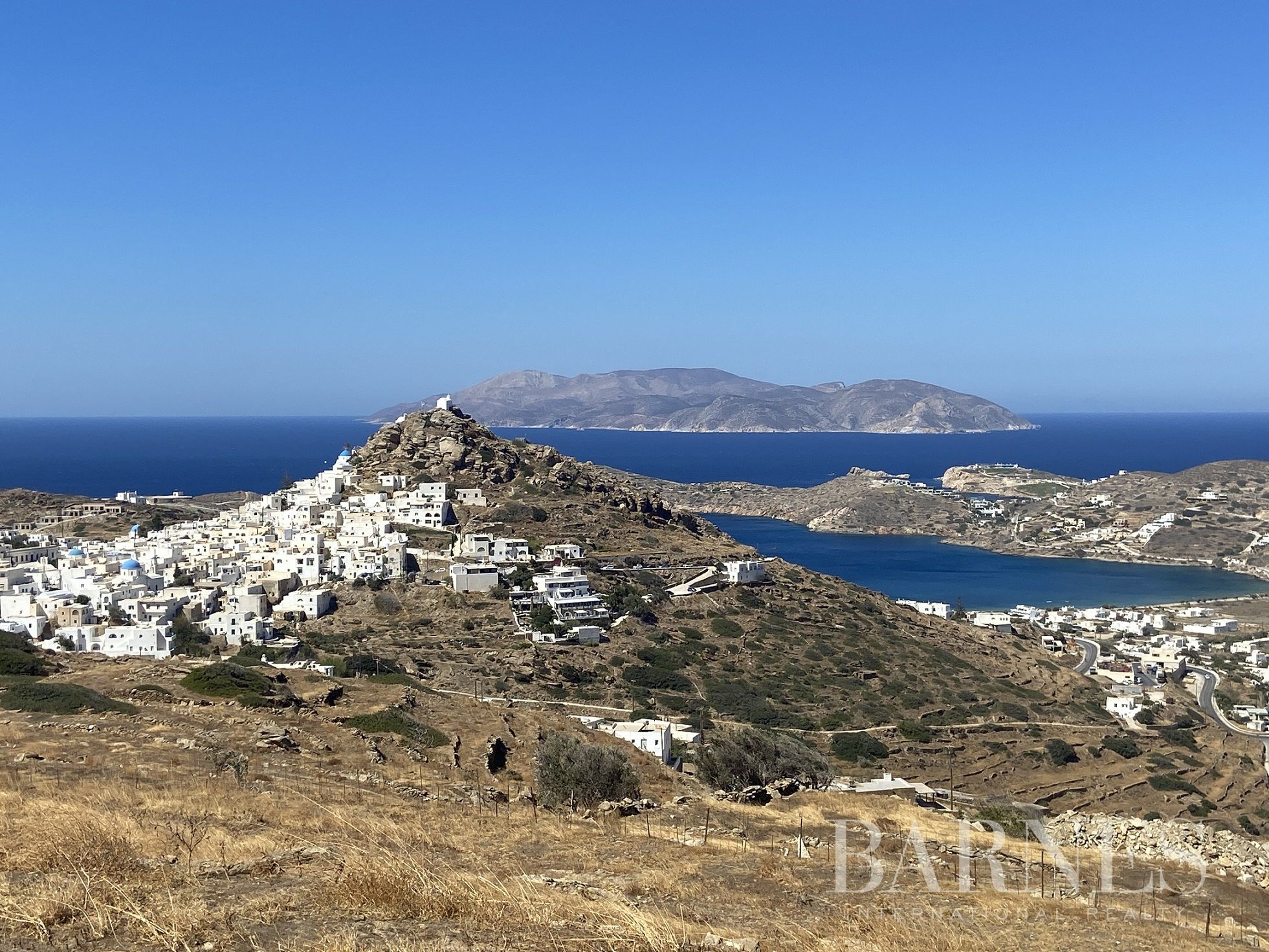 С югозападно изложение и панорамна гледка, парцелът се радва на впечатляваща гледка към град Иос, както и към островите Сикинос, Антипарос и други острови от Цикладите, предлагайки и зашеметяваща гледка към залеза.