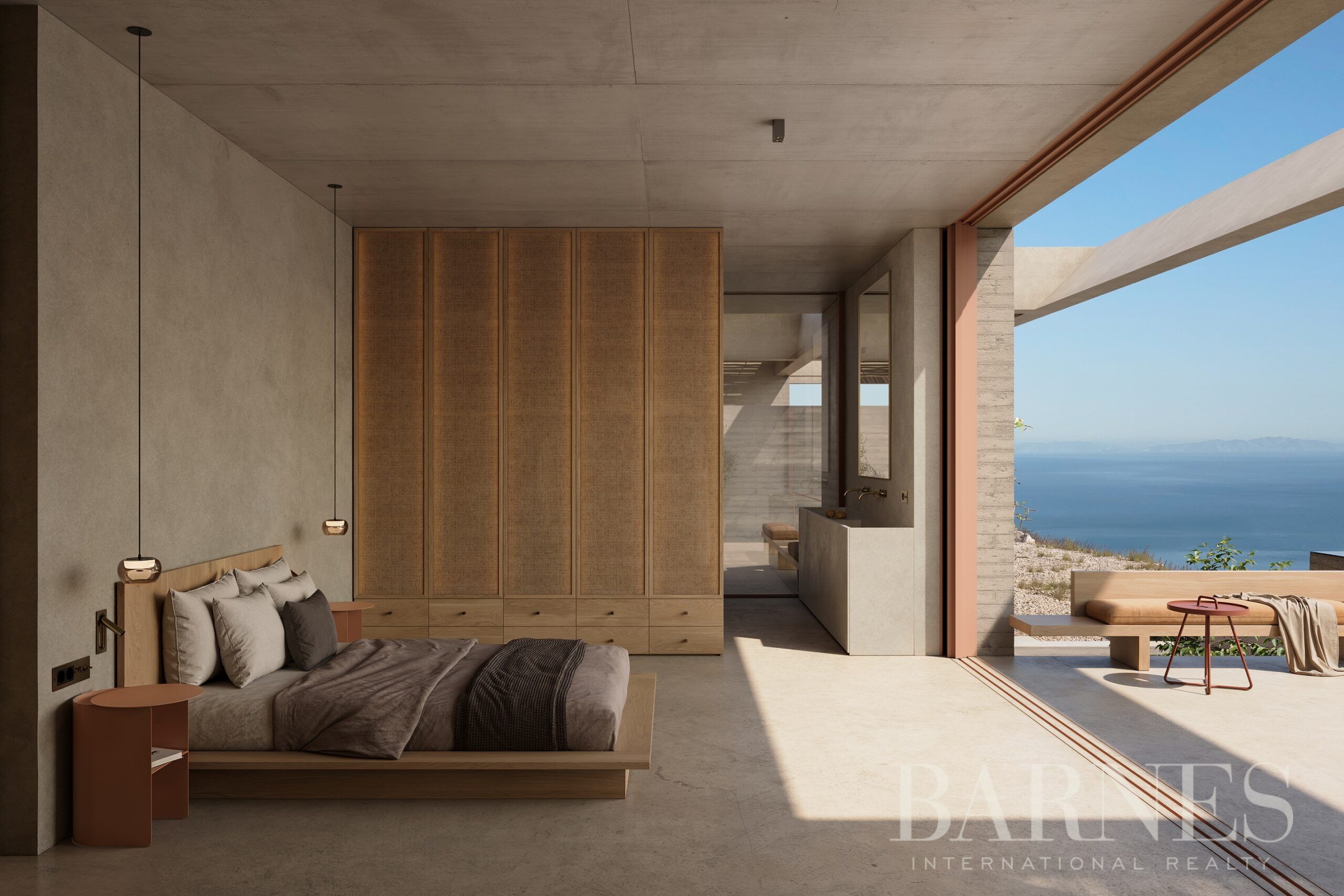 Резиденцията се простира на обща площ от 480 кв.м., разполага с 6 спални, и е построена върху парцел от 6000 кв.м. на брега на морето, който плавно се спуска към малък, красив плаж, предлагащ усещане за уединение и уникалност.