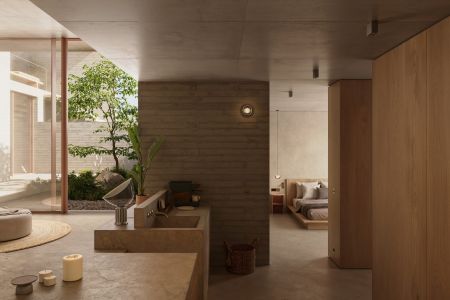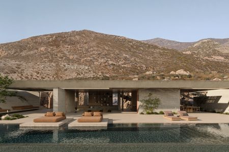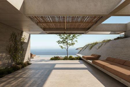 Съчетанието от архитектура и природен пейзаж, с изчистени линии, естествени материали и вечна естетика, създава пространство, което излъчва спокойствие и гостоприемство.