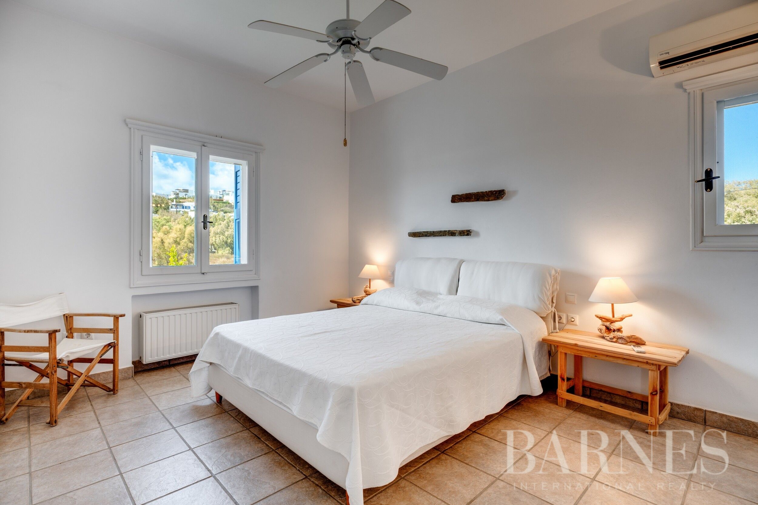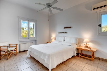 Тази изключителна резиденция се простира на 2 нива, обхващайки общо 576 кв.м. площ върху парцел от 4000 кв.м., предлагайки рядка връзка с природния пейзаж и безкрайното синьо на Егейско море.