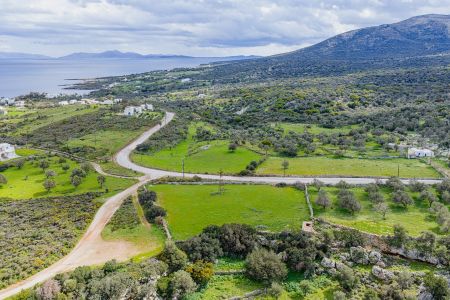 Парцелът е с обща площ от 3169 кв.м., разположен е извън селищната зона и е равен, предлагайки открита гледка към островния пейзаж и морето. Има и предварително одобрение за строително разрешение за жилищна сграда с площ от 200 кв.м.