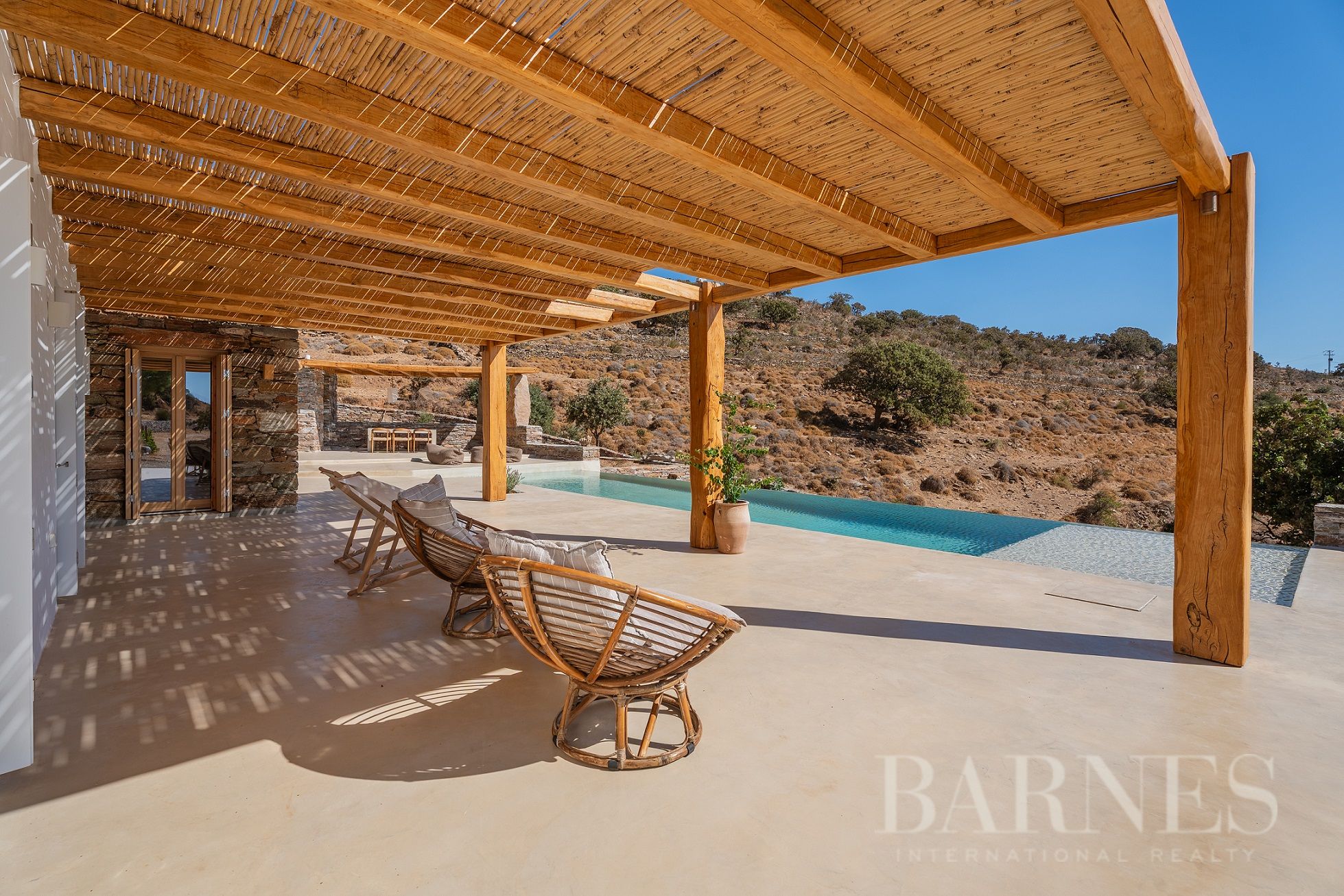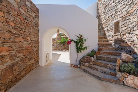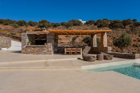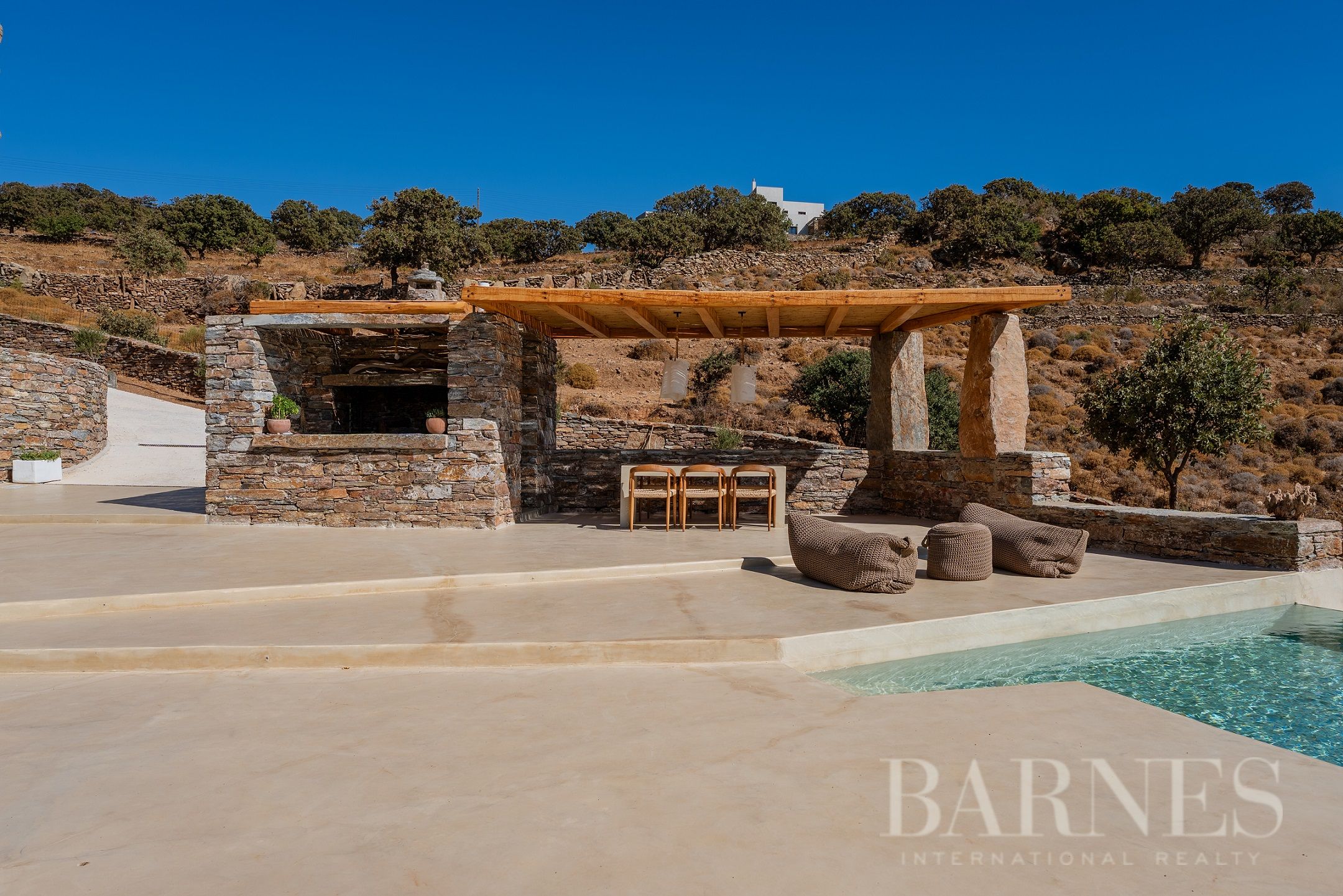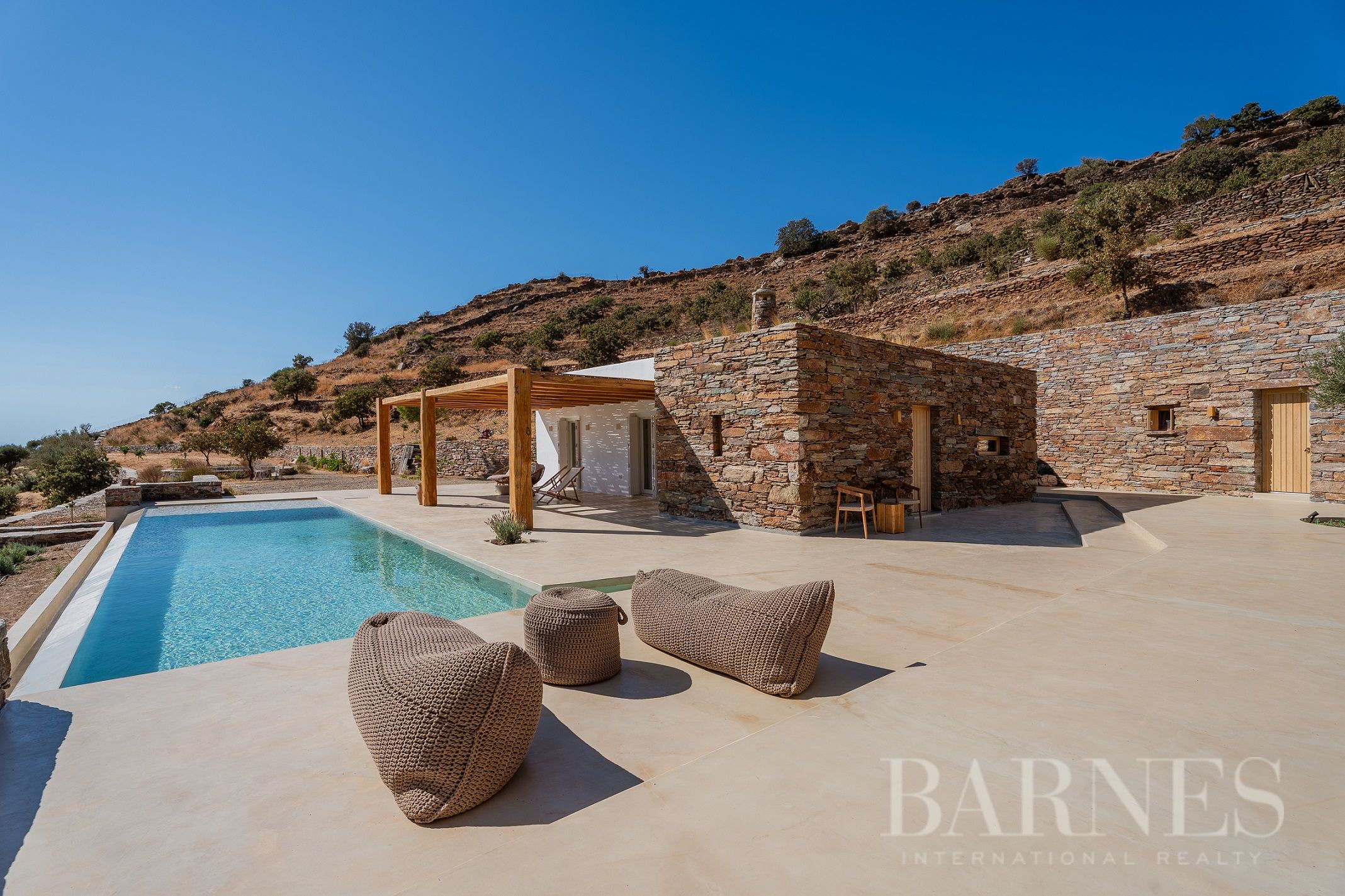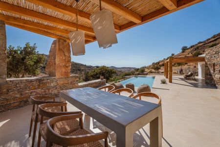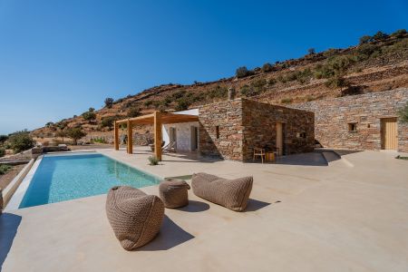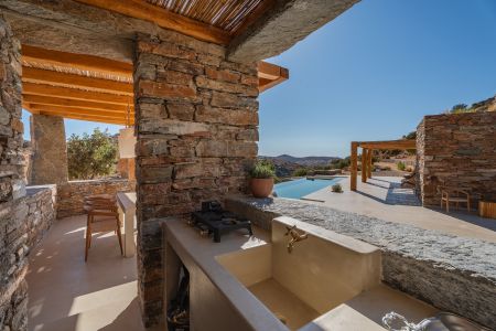 Новопостроена каменна резиденция само на 5 минути от Юлида, предлагаща гледка към цикладския пейзаж на острова.