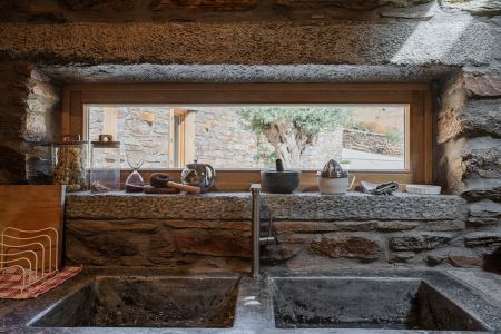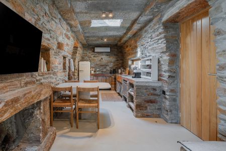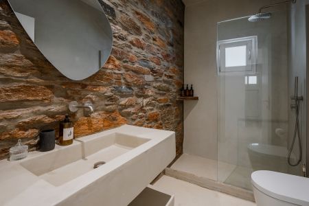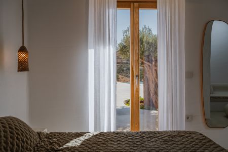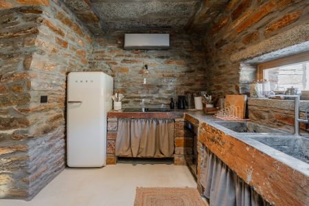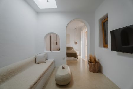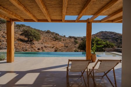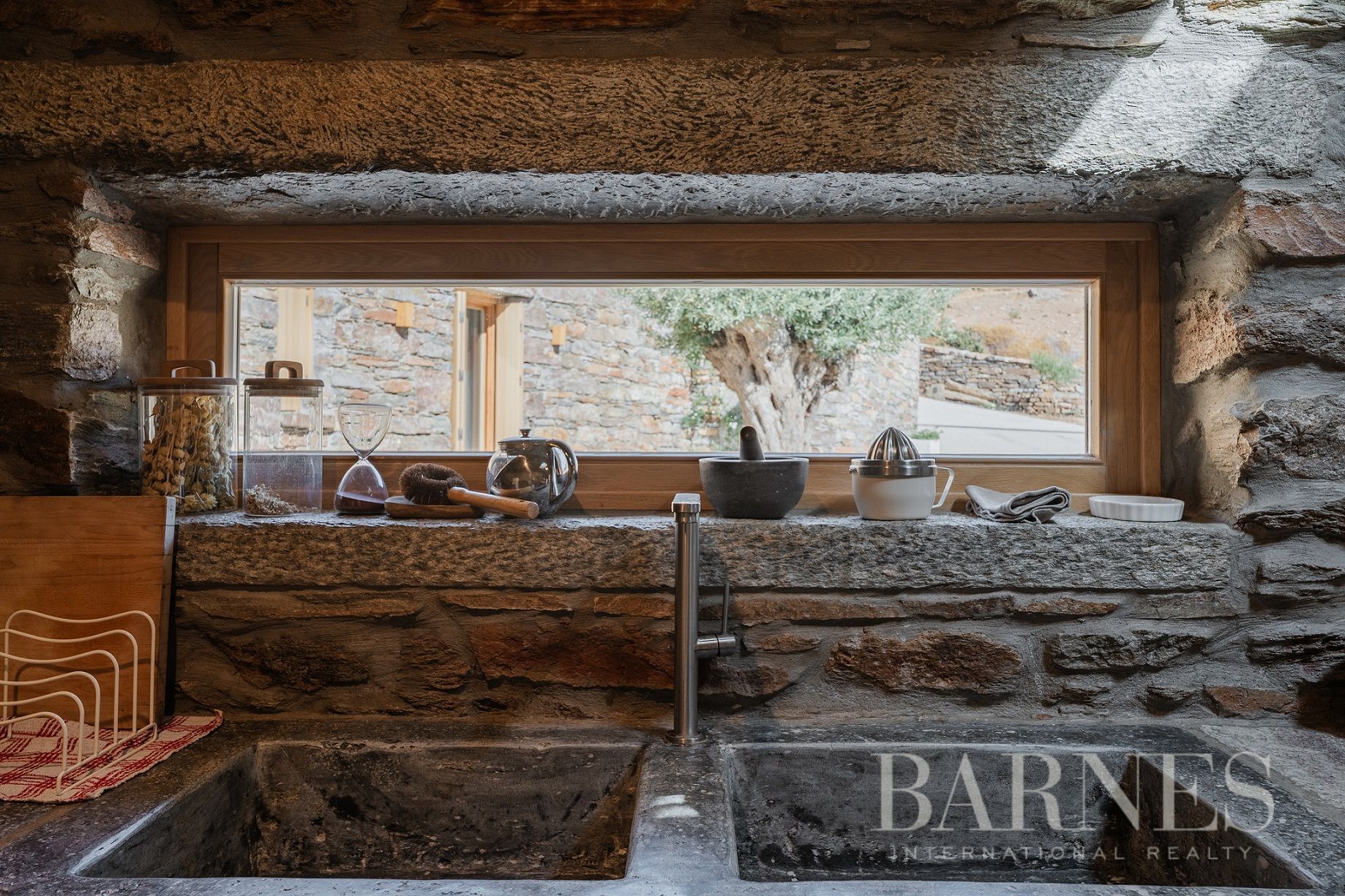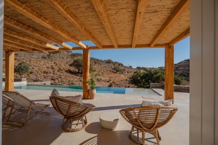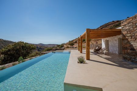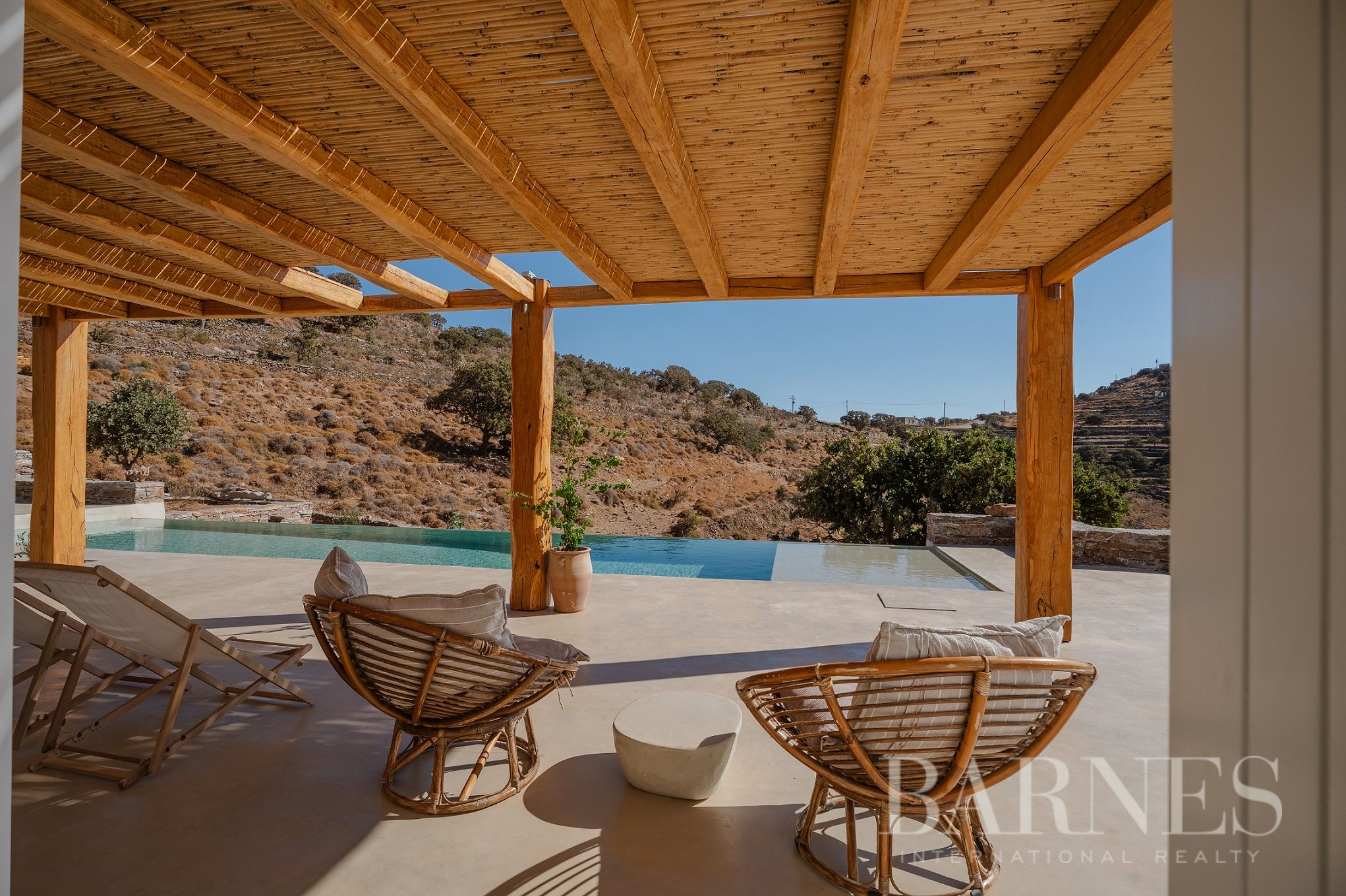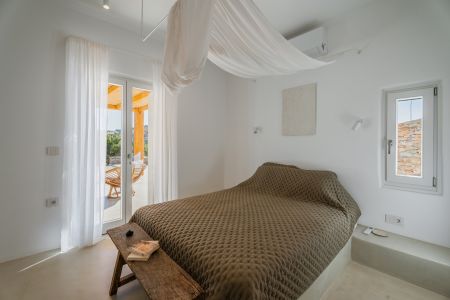 Новопостроена каменна резиденция само на 5 минути от Юлида, предлагаща гледка към цикладския пейзаж на острова.