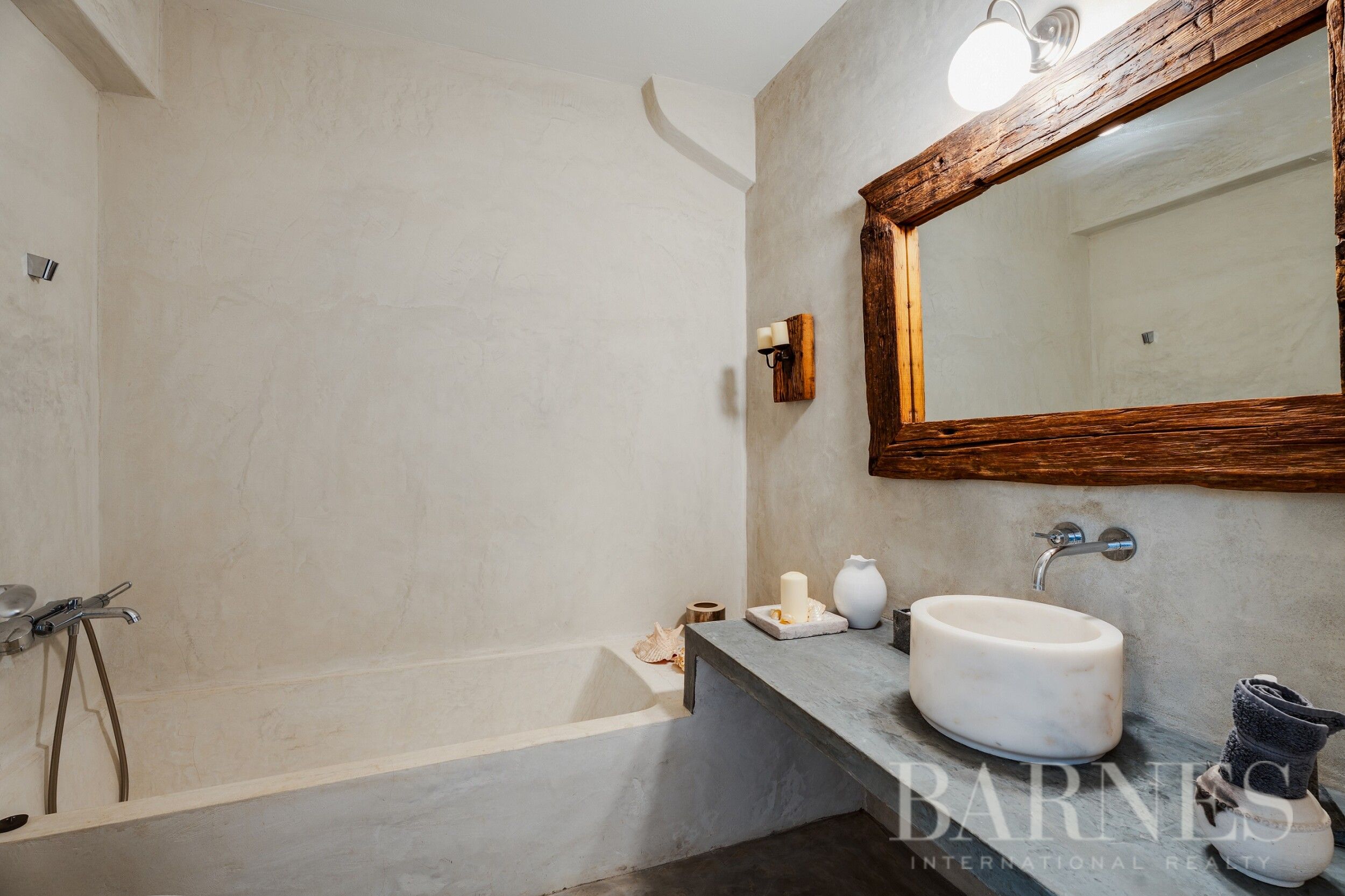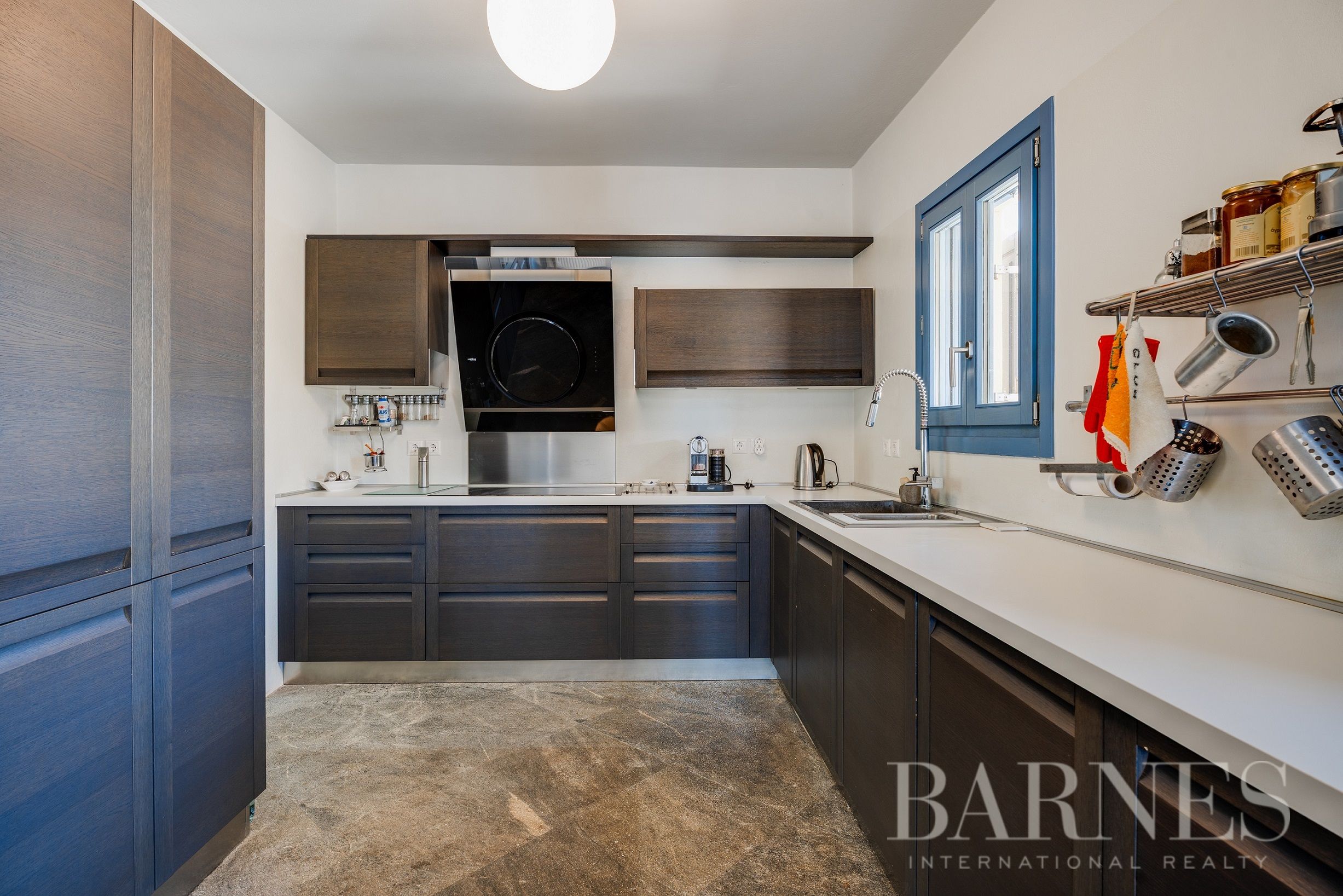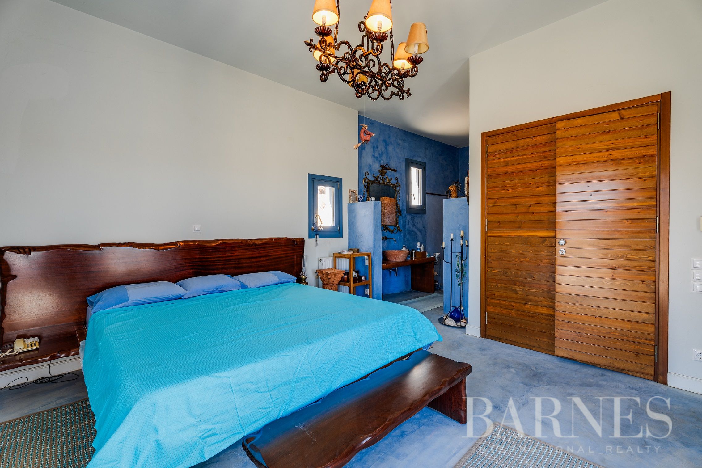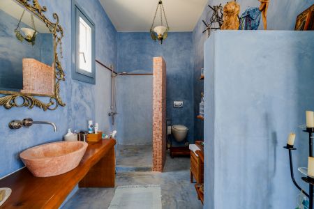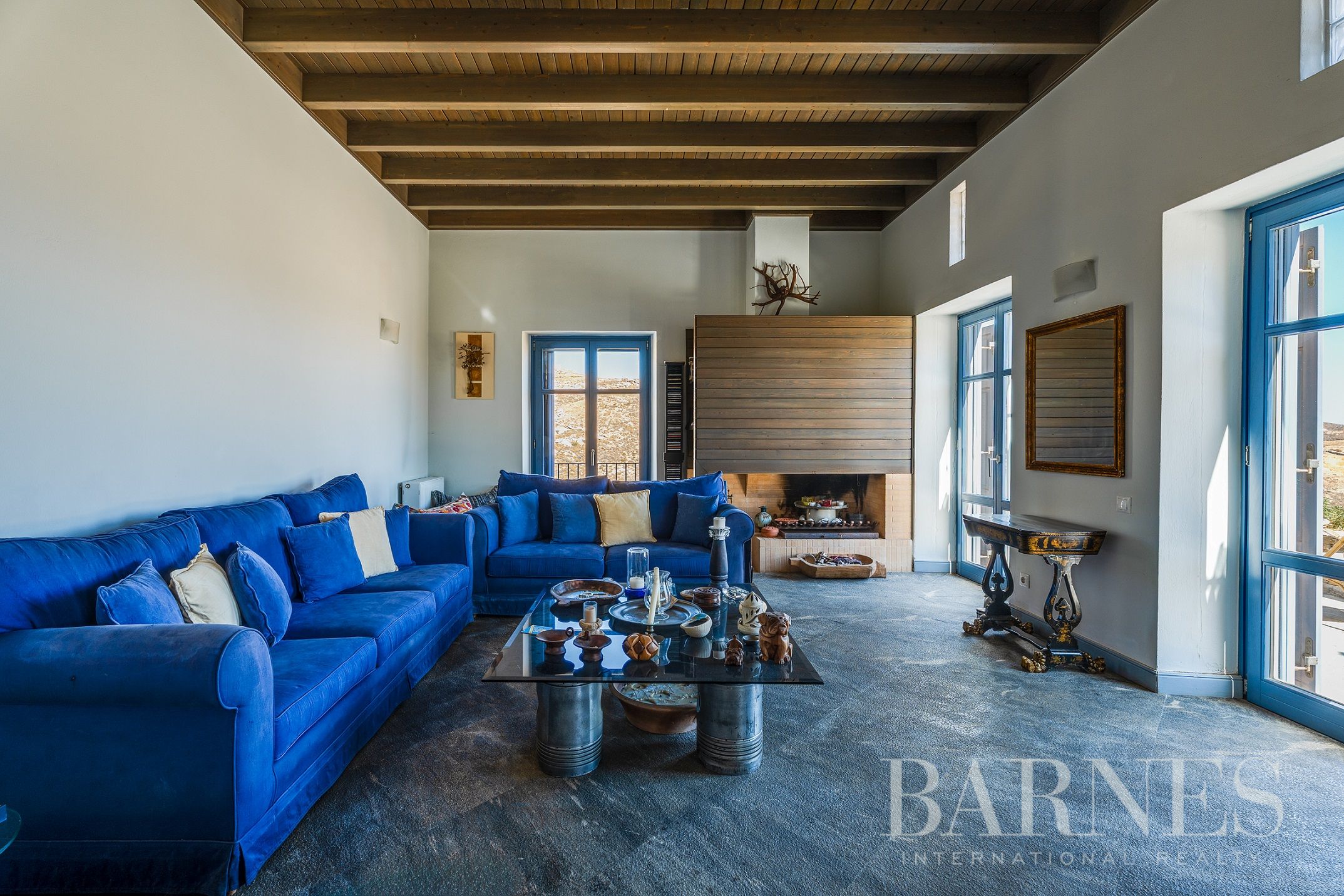 Имотът включва тераси с места за сядане и голяма градина, предлагаща изключителна гледка към морето и цикладския пейзаж.