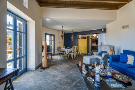 Разположена в много живописен район на Серифос, тази зашеметяваща къща предлага панорамна гледка към пристанището и Егейско море.