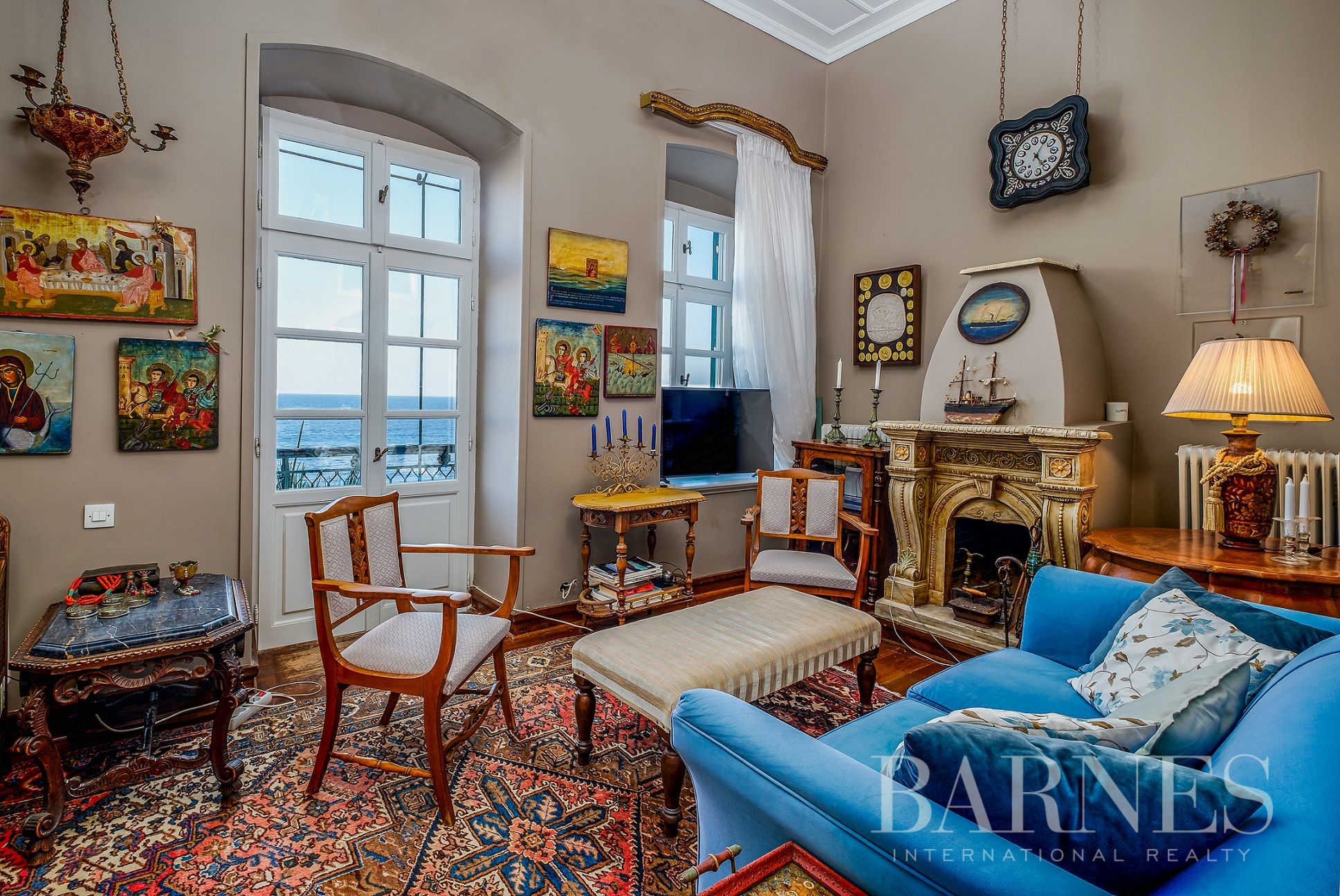 Горният етаж се състои от голяма всекидневна с камина, допълнителен хол и трапезария. Всички стаи предлагат безпрепятствена гледка към морето. На същото ниво се намират главната спалня със самостоятелна баня, както и още 2 спални и 1 баня. Освен това има напълно оборудвана кухня.
