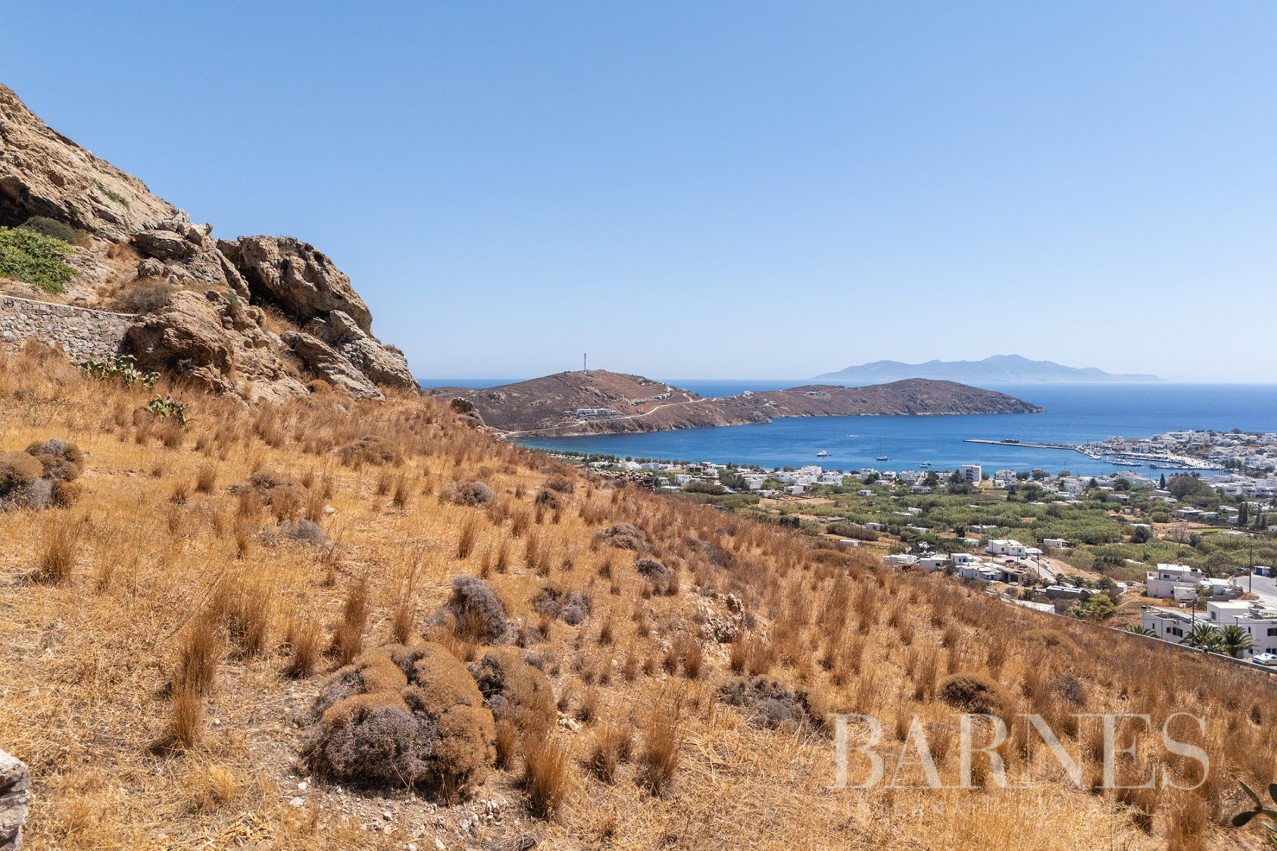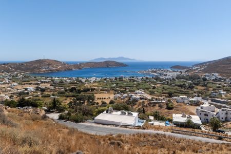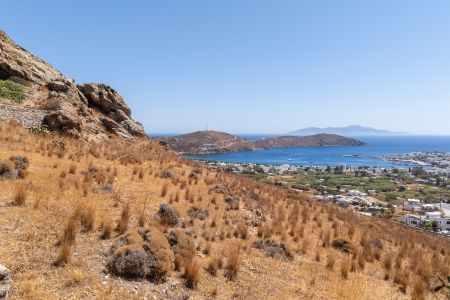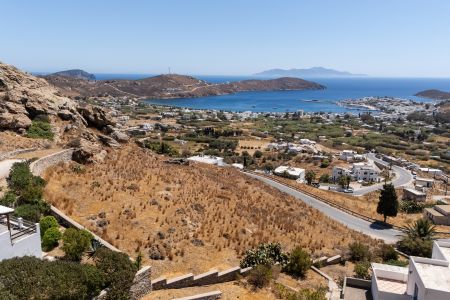 С площ от 3325 кв.м., имотът предлага безпрепятствена гледка към Егейско море и автентичния цикладски пейзаж на острова.