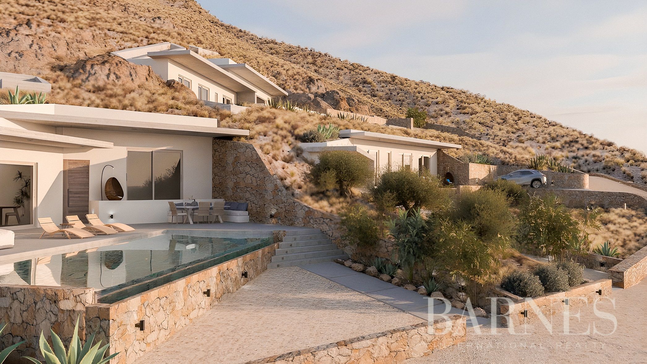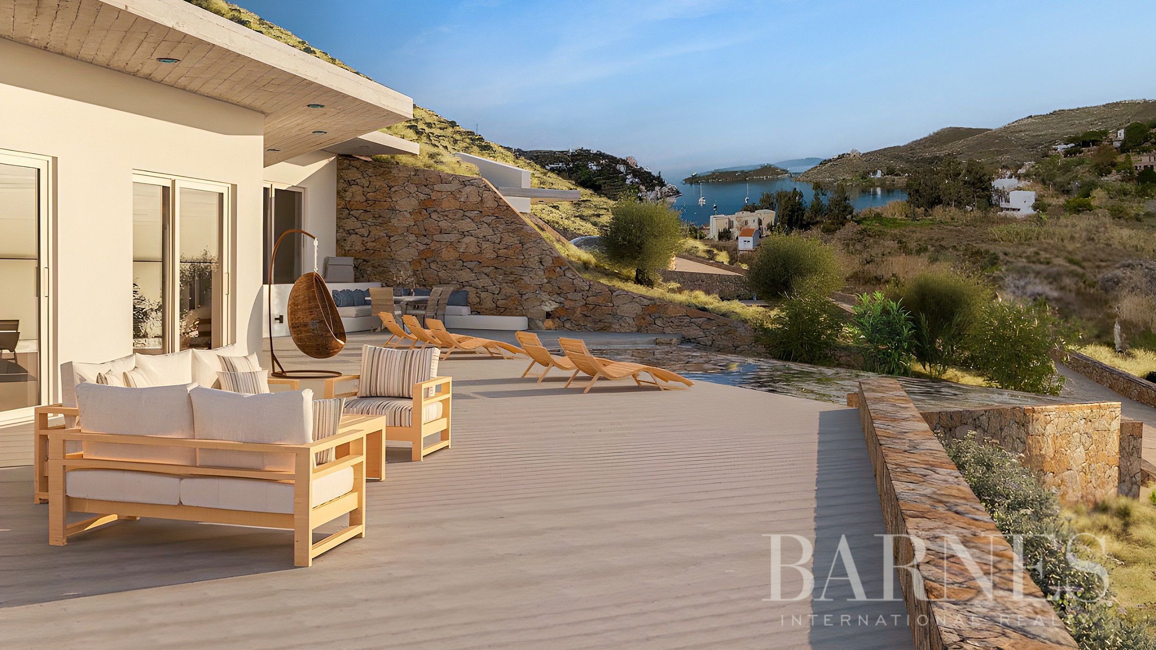 Съвременна резиденция на пешеходно разстояние от магазините и ресторантите на живописния Вуркари, предлагаща спираща дъха гледка към цикладския залез.