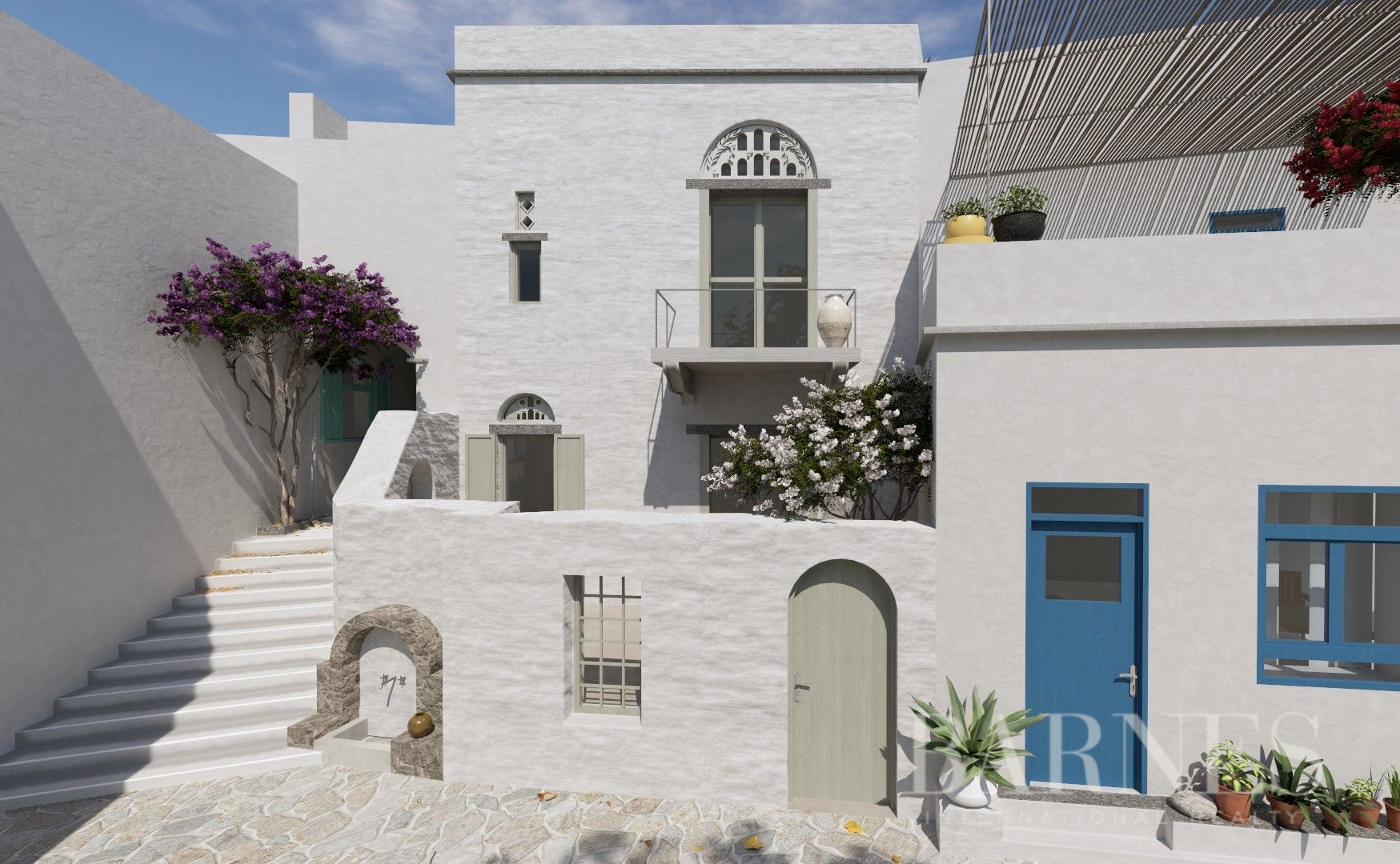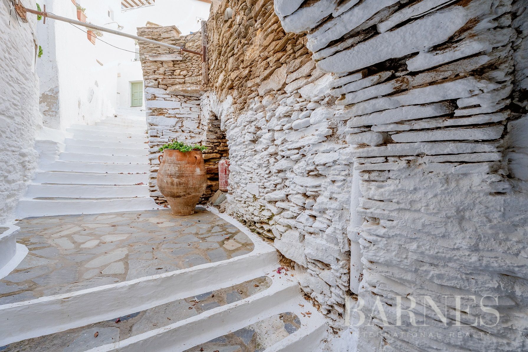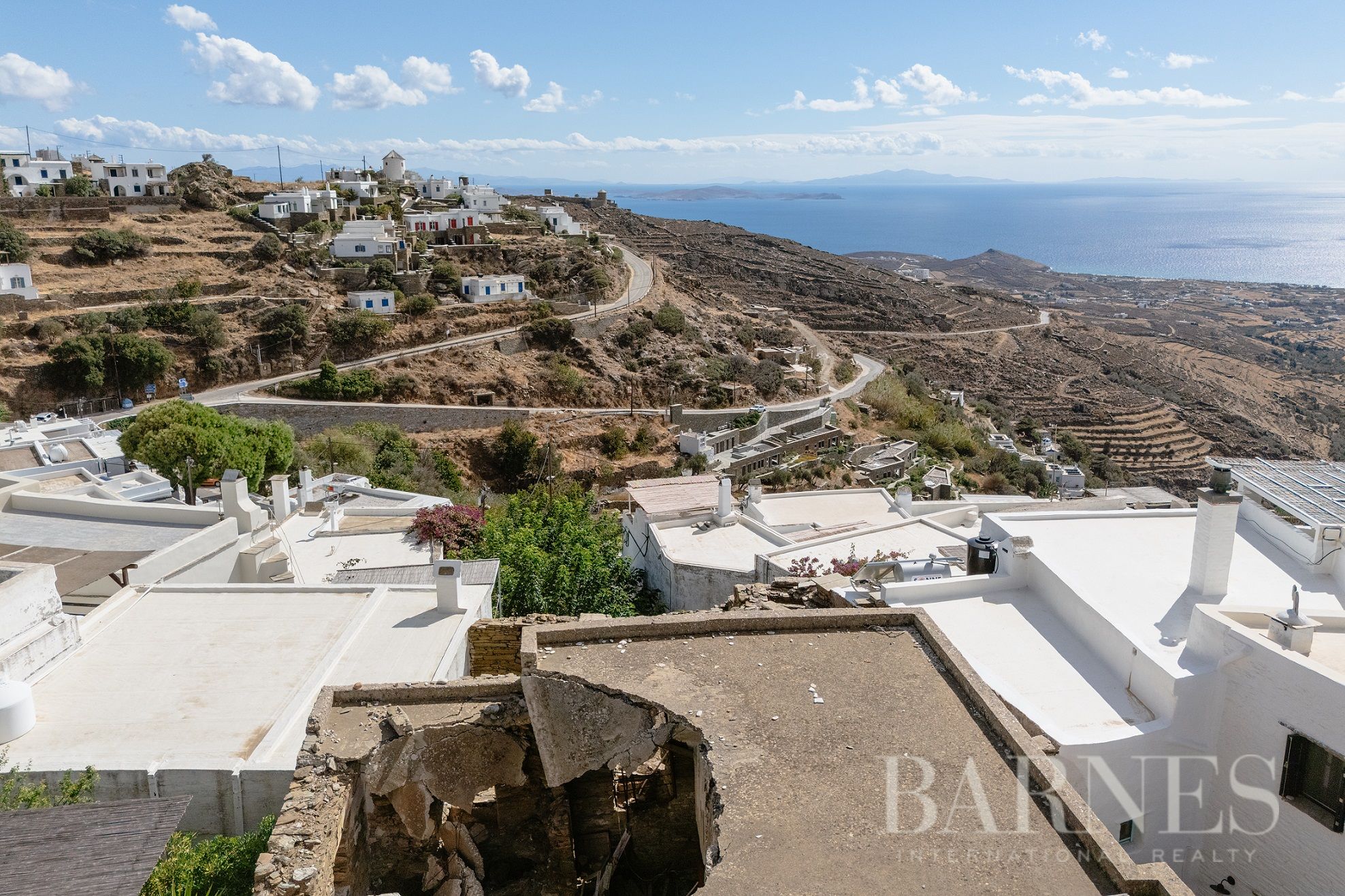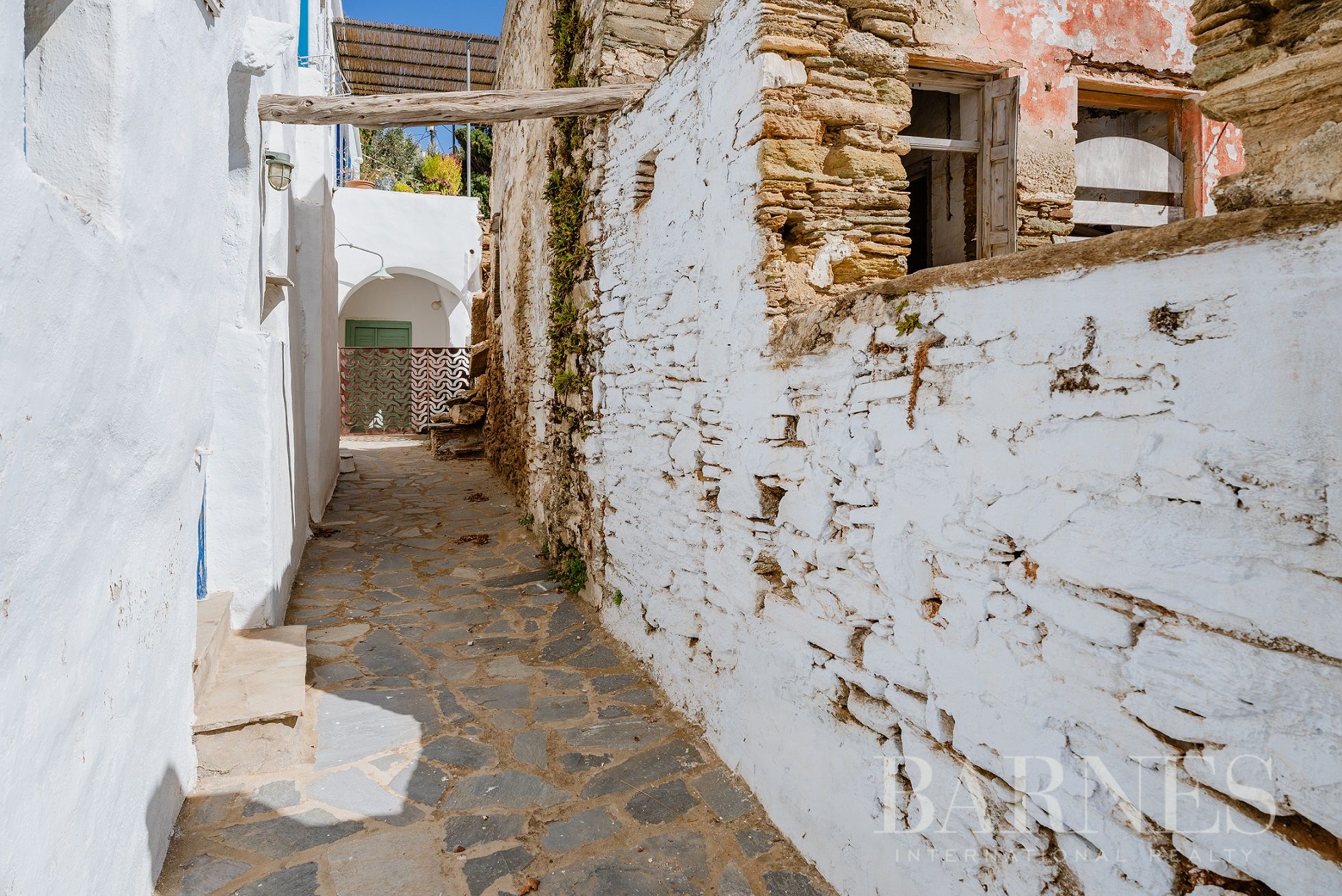 Парцелите са с обща площ от 196 кв.м., докато съществуващите разрушени сгради се простират на 315 кв.м. Местоположението предлага безпрепятствена гледка към егейския пейзаж, а имотът уникално съчетава автентичността на цикладската архитектура с потенциала за впечатляващ ремонт.