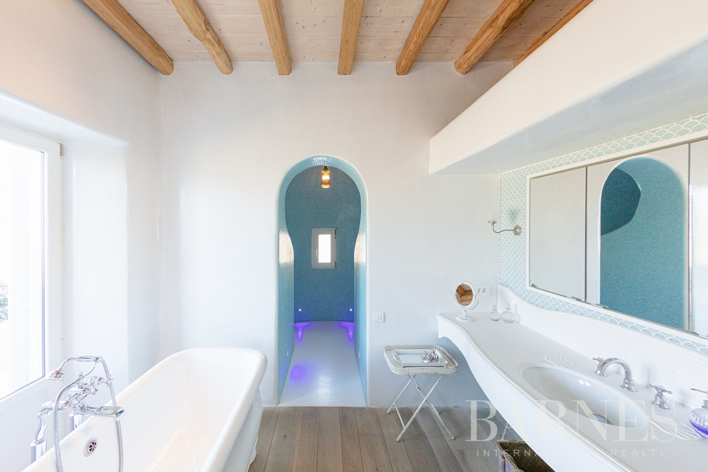 Имотът с площ от 1400 кв.м. е разположен върху парцел от 10 100 кв.м. и предлага вълшебни гледки към морето и залеза.