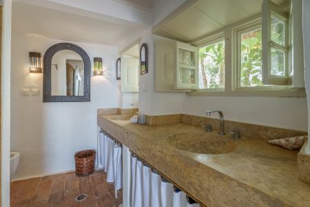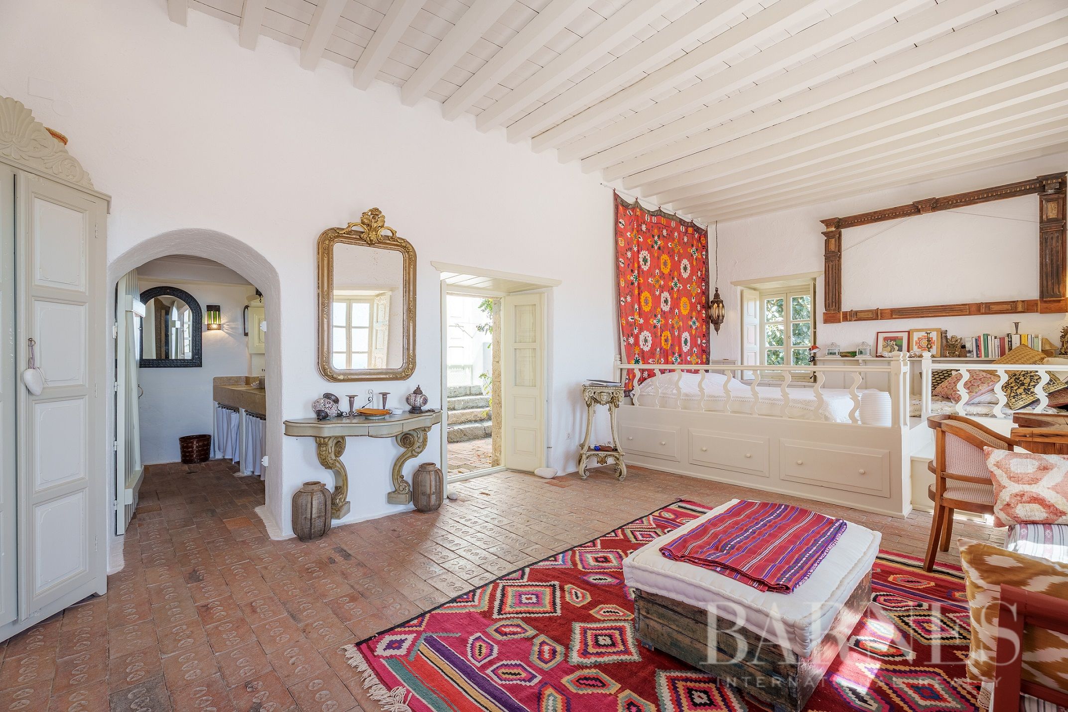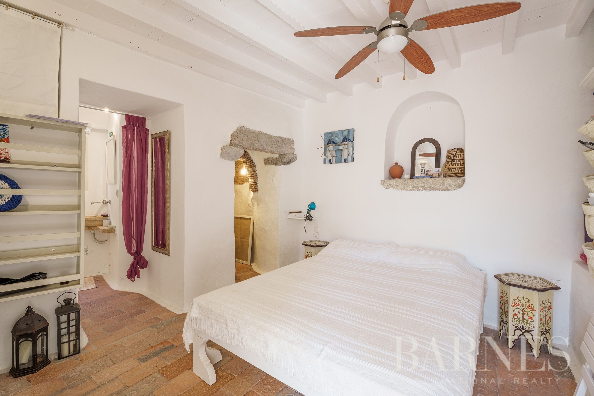 Вътрешно стълбище води до мецанина, където се помещава допълнителна просторна спалня.