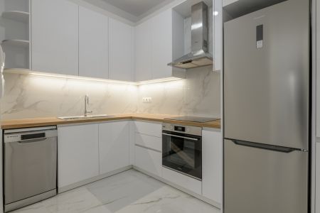 Апартаментът с площ от 53 кв.м. се намира на 2-ри етаж на добре поддържана жилищна сграда и е напълно реновиран. Състои се от светъл хол, отделна кухня, оборудвана с електрически уреди, 1 спалня и 1 баня, както и допълнително вградено място за съхранение над банята. Както холът, така и спалнята имат достъп до хубав балкон.