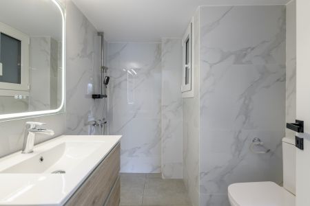 Реновиран апартамент на престижно място в Нео Фалиро, много близо до спирки на метрото и трамвая, както и до местния пазар.