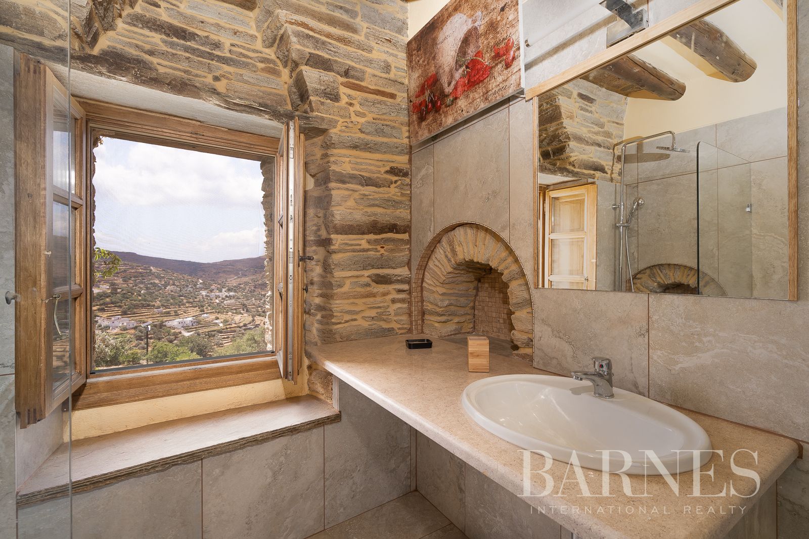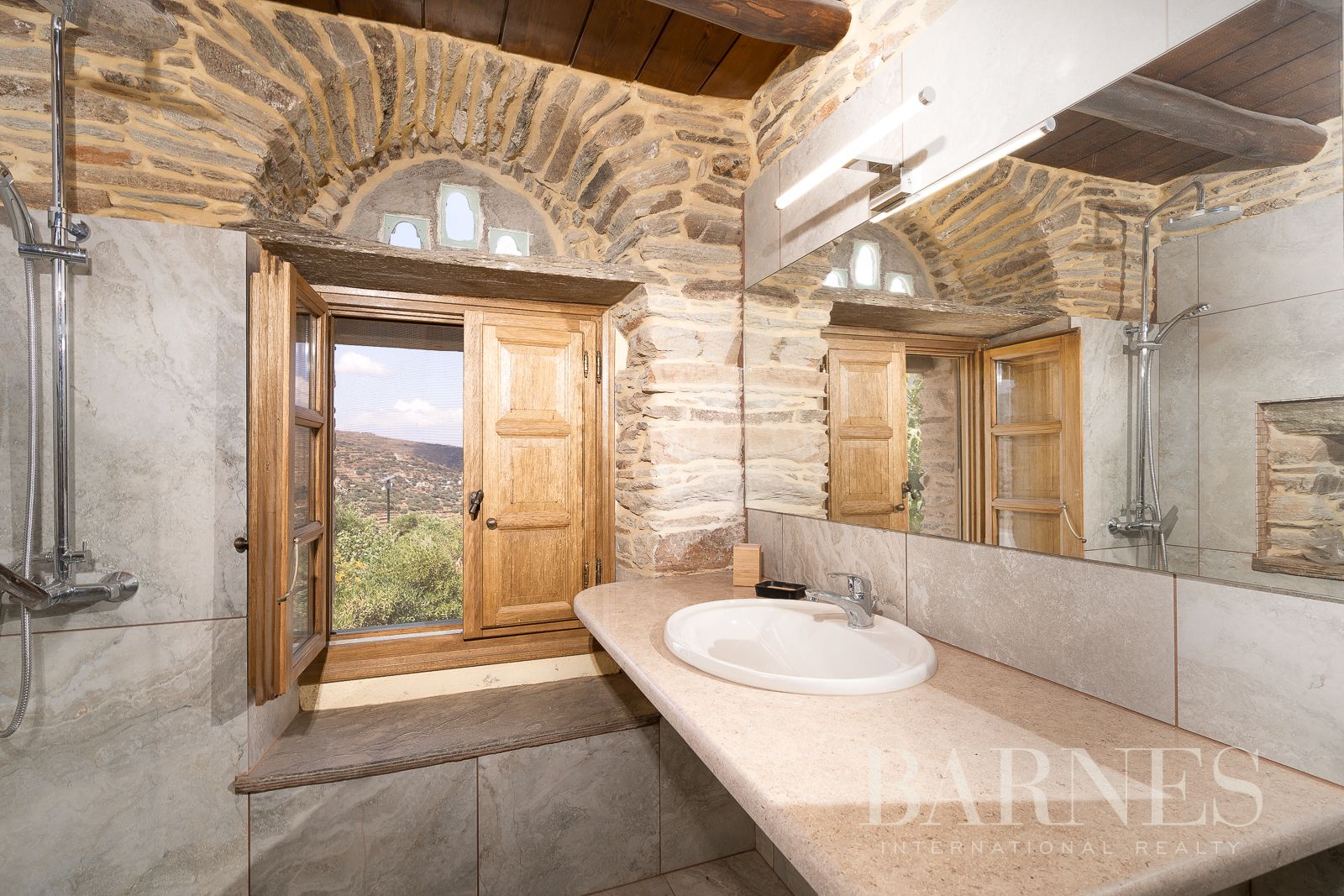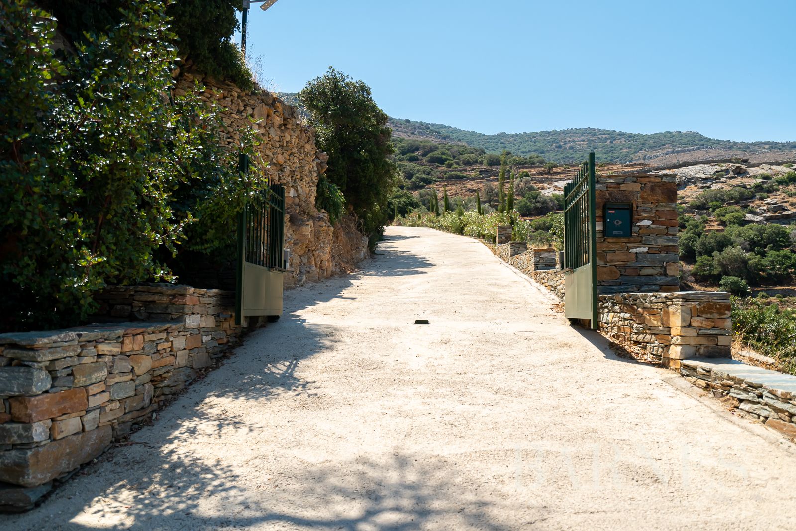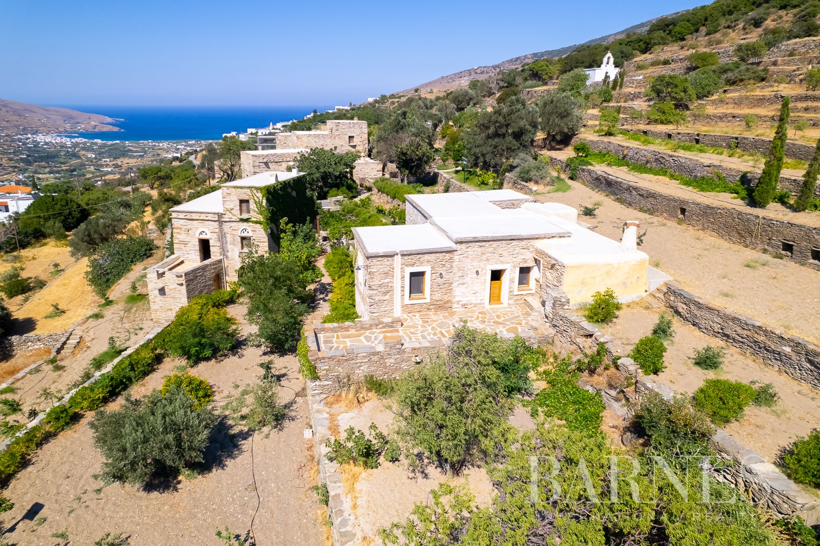 На открито имотът включва овощни градини, лозя, бадемови дървета, традиционни каменни пещи и реставрирани преси за вино, всички внимателно запазени с оглед на наследството на острова. На разположение е и паркинг.